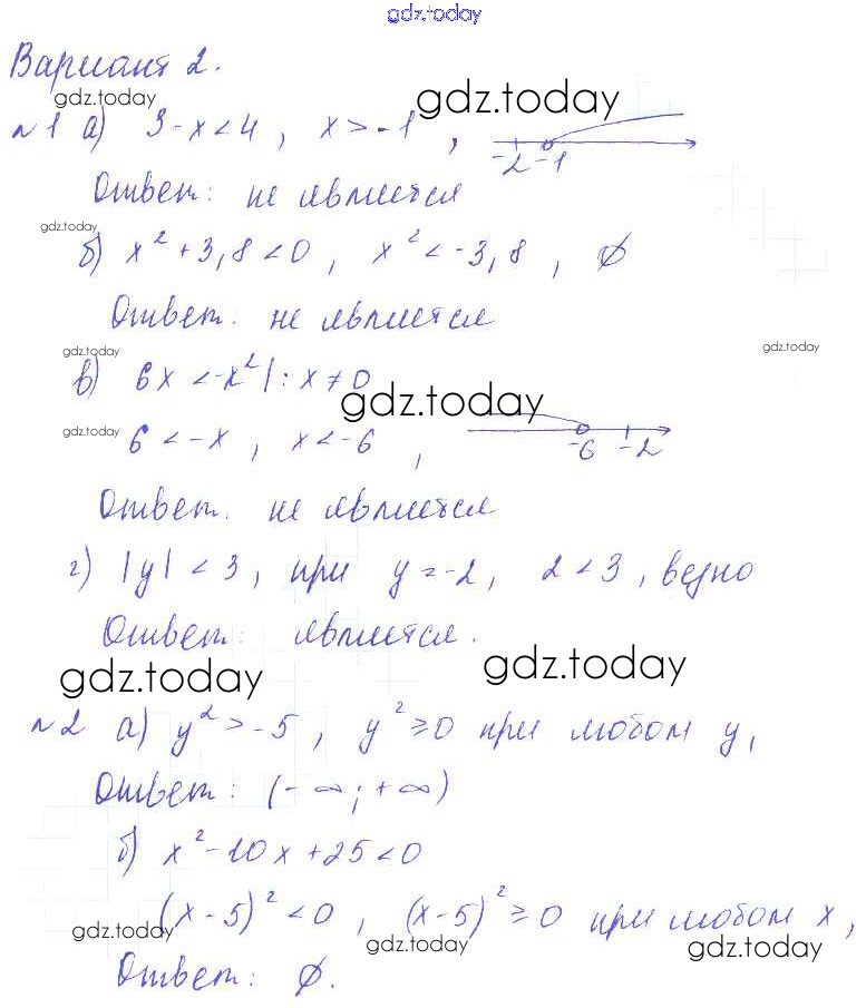 На страницах сайта gdz.today вы найдете учебный и вспомогательный материал, направленный на улучшения знаний школьной программы. ГДЗ - онлайн мир знаний П-7. Решение линейных неравенств Решение к проверочным работам Вариант 2 Дидактическим материалам по Алгебре для 9 класса Евстафьева, Карп Просвещение 2017
