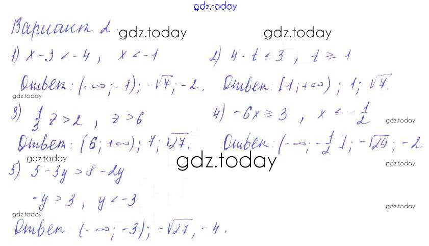 На страницах сайта gdz.today вы найдете учебный и вспомогательный материал, направленный на улучшения знаний школьной программы. ГДЗ - онлайн мир знаний П-8. Решение линейных неравенств Решение к проверочным работам Вариант 2 Дидактическим материалам по Алгебре для 9 класса Евстафьева, Карп Просвещение 2017