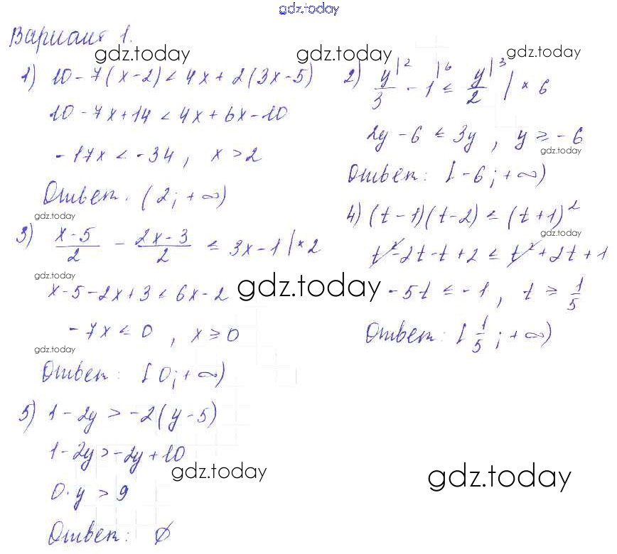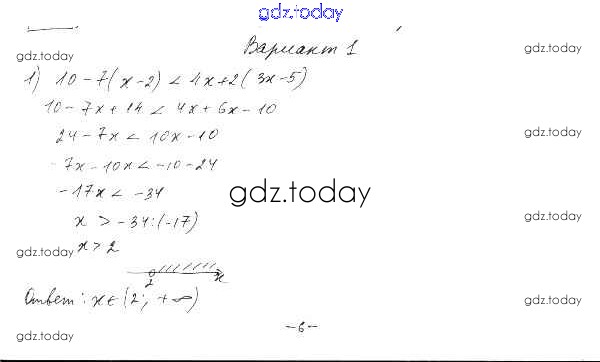 На страницах сайта gdz.today вы найдете учебный и вспомогательный материал, направленный на улучшения знаний школьной программы. ГДЗ - онлайн мир знаний П-9. Решение линейных неравенств Решение к проверочным работам Вариант 1 Дидактическим материалам по Алгебре для 9 класса Евстафьева, Карп Просвещение 2017