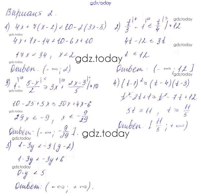 На страницах сайта gdz.today вы найдете учебный и вспомогательный материал, направленный на улучшения знаний школьной программы. ГДЗ - онлайн мир знаний П-9. Решение линейных неравенств Решение к проверочным работам Вариант 2 Дидактическим материалам по Алгебре для 9 класса Евстафьева, Карп Просвещение 2017