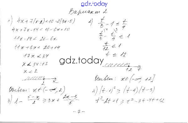 Ответы к П-9. Решение линейных неравенств Решение к проверочным работам Вариант 2 Дидактическим материалам по Алгебре для 9 класса Евстафьева, Карп Просвещение 2017