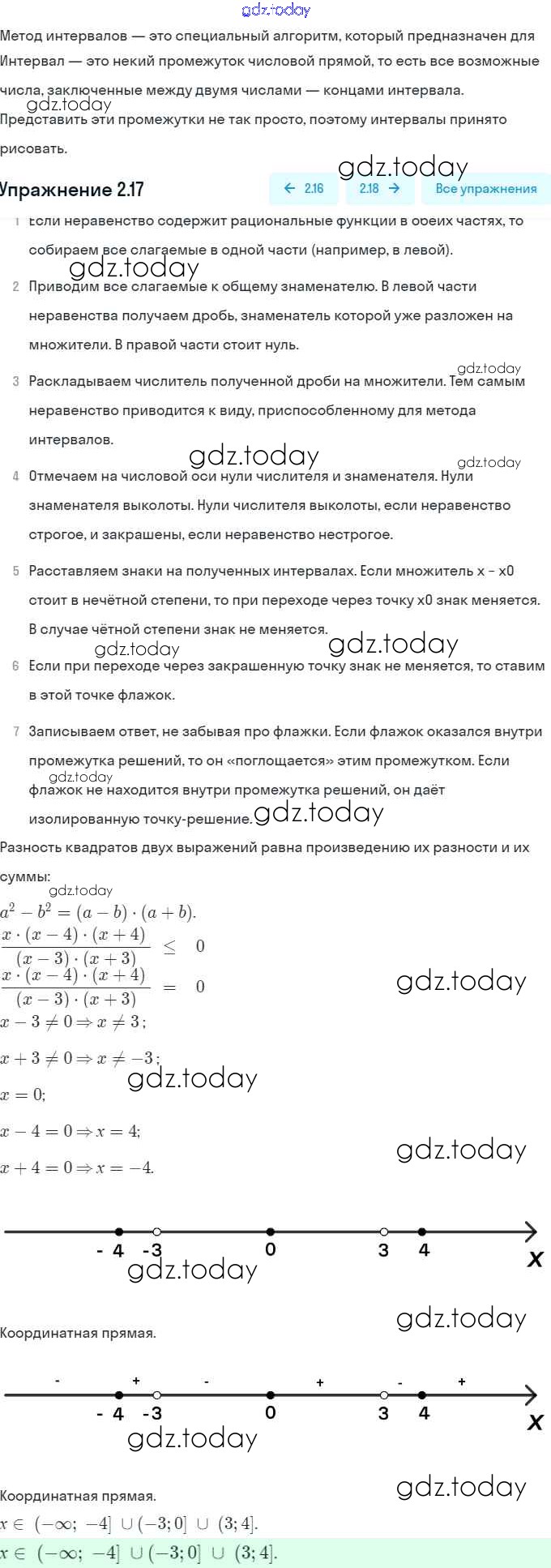 На страницах сайта gdz.today вы найдете учебный и вспомогательный материал, направленный на улучшения знаний школьной программы. ГДЗ - онлайн мир знаний § 2. Рациональные неравенства Решение. Глава 1. Рациональные неравенства и их системы 2.17 Задачнику по Алгебре для 9 класса Мордкович, Александрова Мнемозина 2010