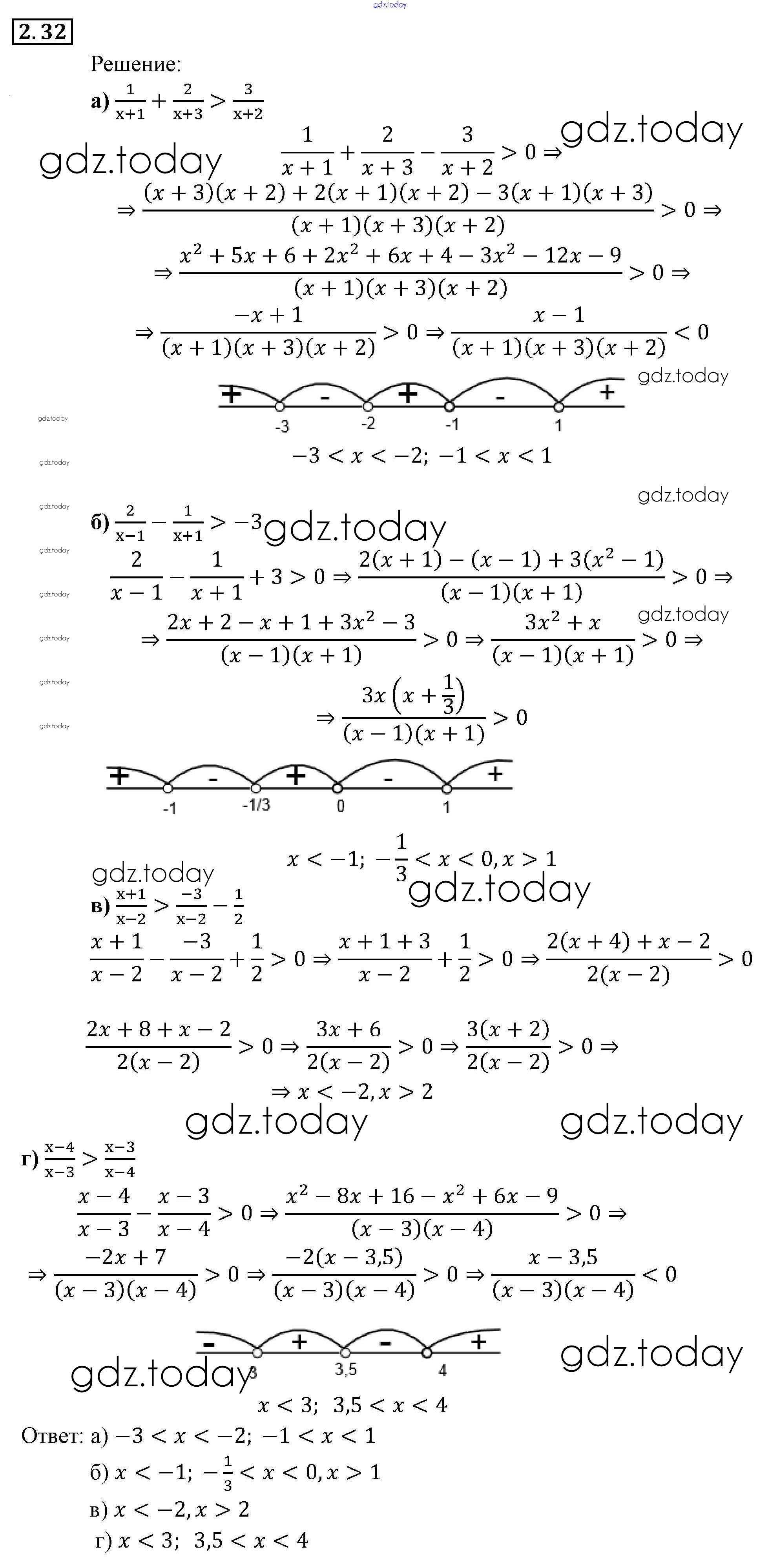 На страницах сайта gdz.today вы найдете учебный и вспомогательный материал, направленный на улучшения знаний школьной программы. ГДЗ - онлайн мир знаний § 2. Рациональные неравенства Глава 1. Неравенства и системы неравенств 32 Задачнику по Алгебре для 9 класса Мордкович, Александрова Мнемозина 2010
