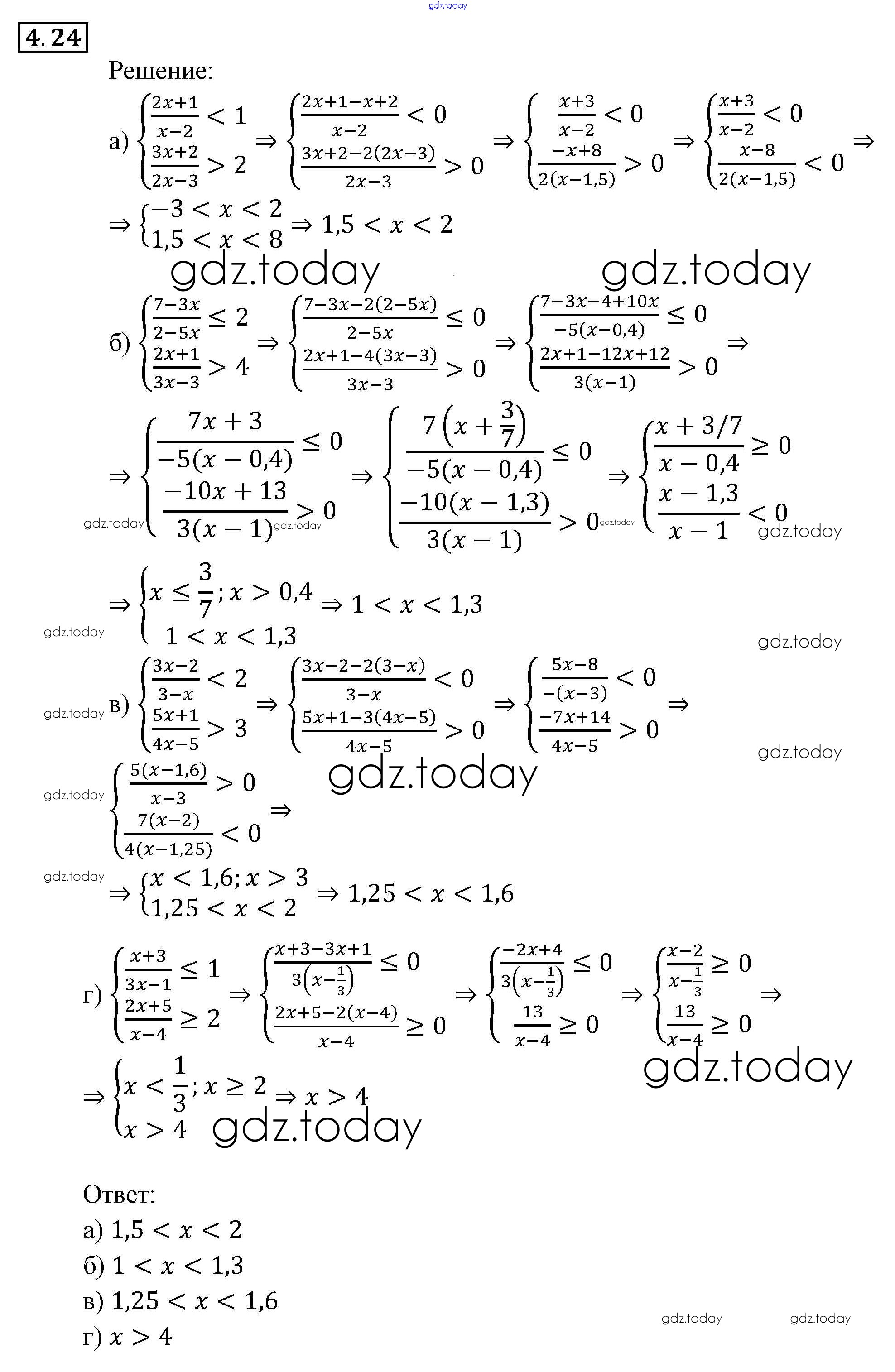 Ответы к § 4. Системы рациональных неравенств Глава 1. Неравенства и системы неравенств 24 Задачнику по Алгебре для 9 класса Мордкович, Александрова Мнемозина 2010
