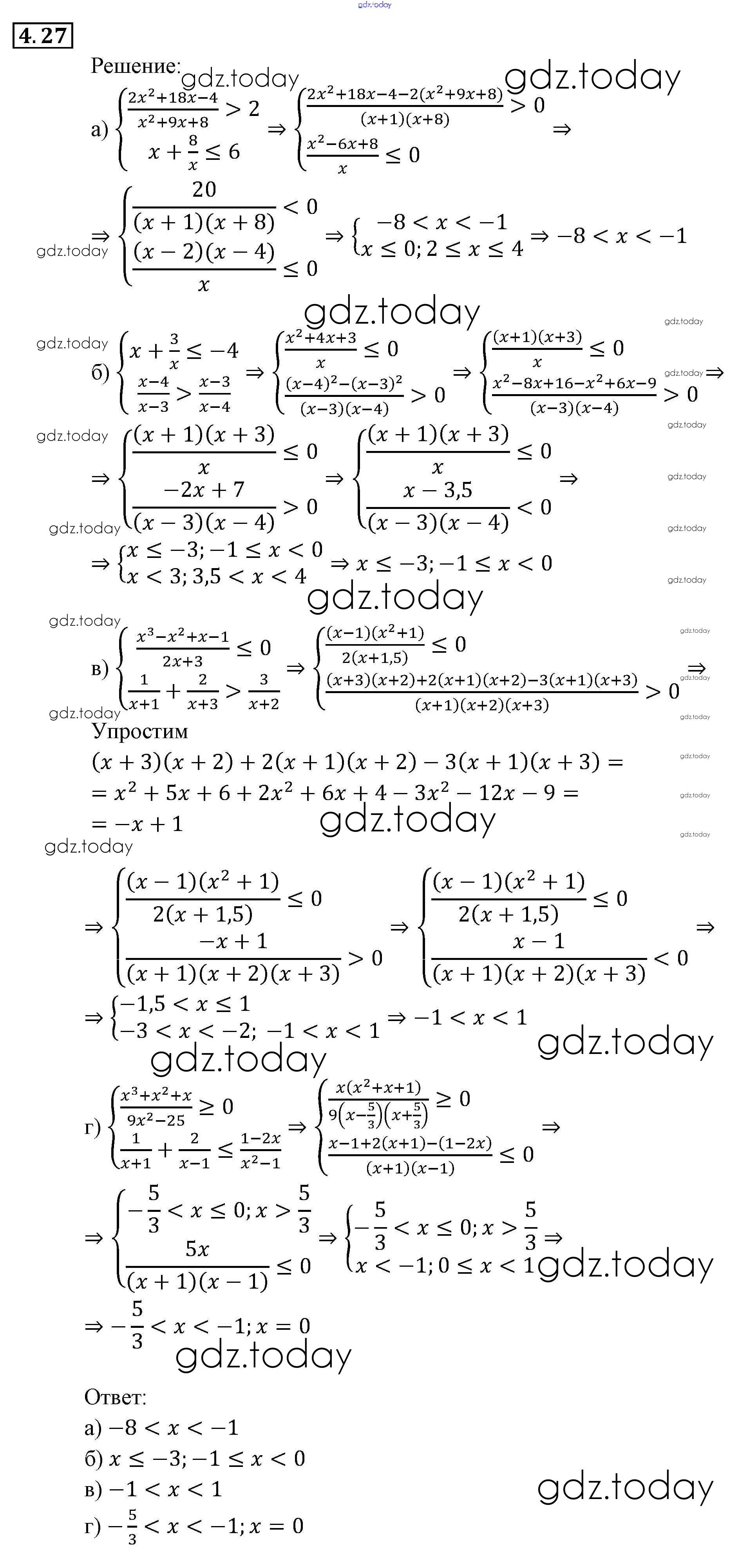 Ответы к § 4. Системы рациональных неравенств Глава 1. Неравенства и системы неравенств 27 Задачнику по Алгебре для 9 класса Мордкович, Александрова Мнемозина 2010