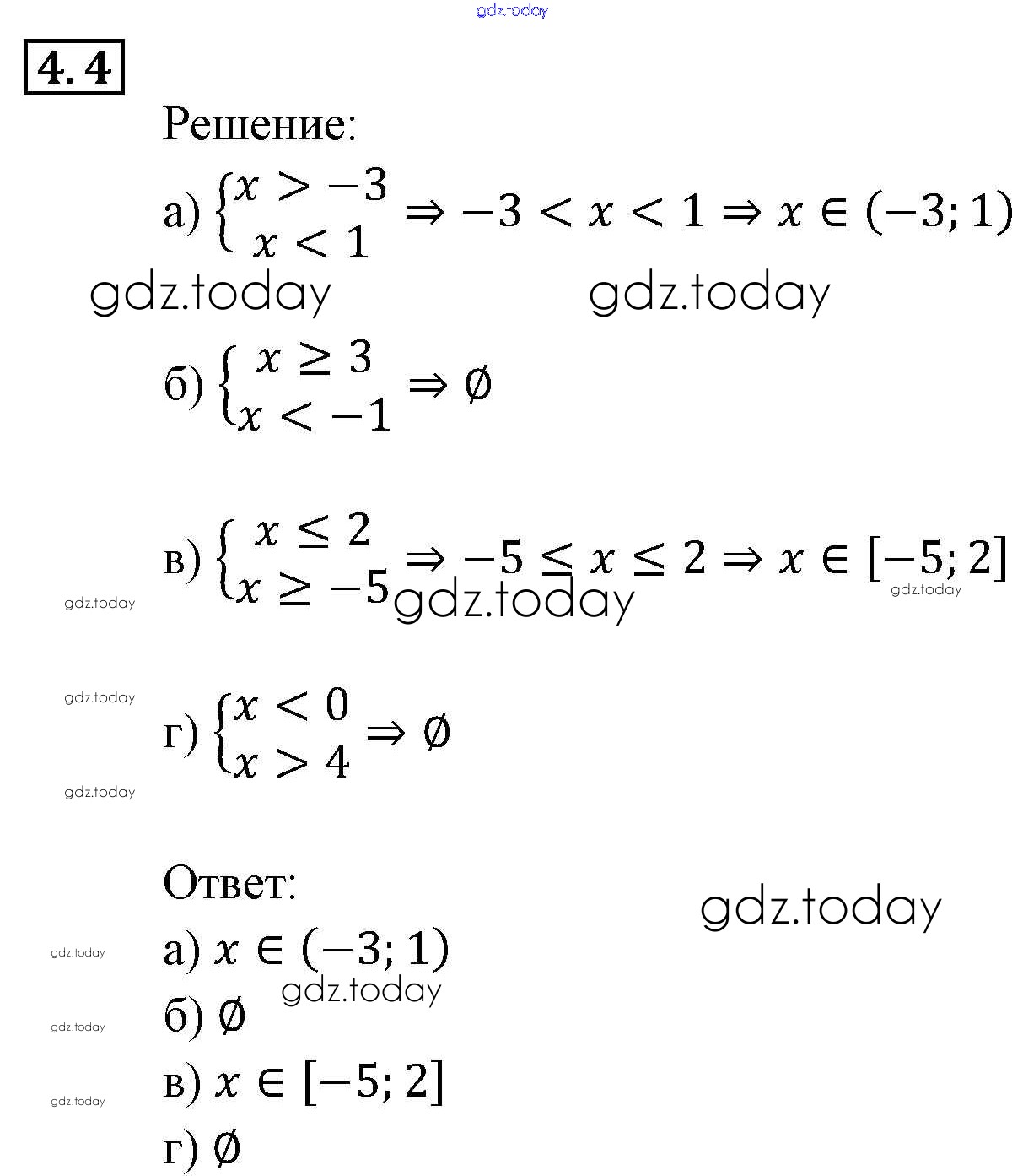Ответы к § 4. Системы рациональных неравенств Решение. Глава 1. Рациональные неравенства и их системы 4.4 Задачнику по Алгебре для 9 класса Мордкович, Александрова Мнемозина 2010