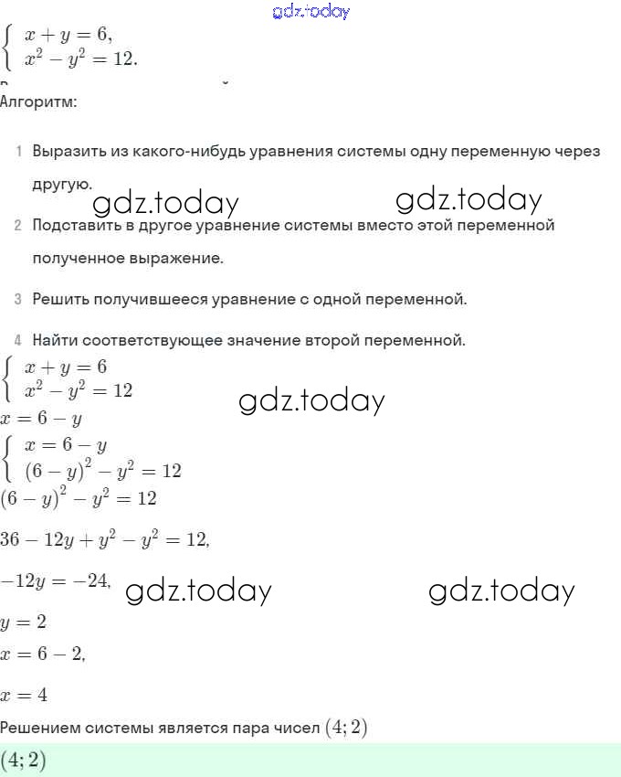На страницах сайта gdz.today вы найдете учебный и вспомогательный материал, направленный на улучшения знаний школьной программы. ГДЗ - онлайн мир знаний § 6. Методы решения систем уравнений Решение. Глава 2. Системы уравнений 6.11 Задачнику по Алгебре для 9 класса Мордкович, Александрова Мнемозина 2010