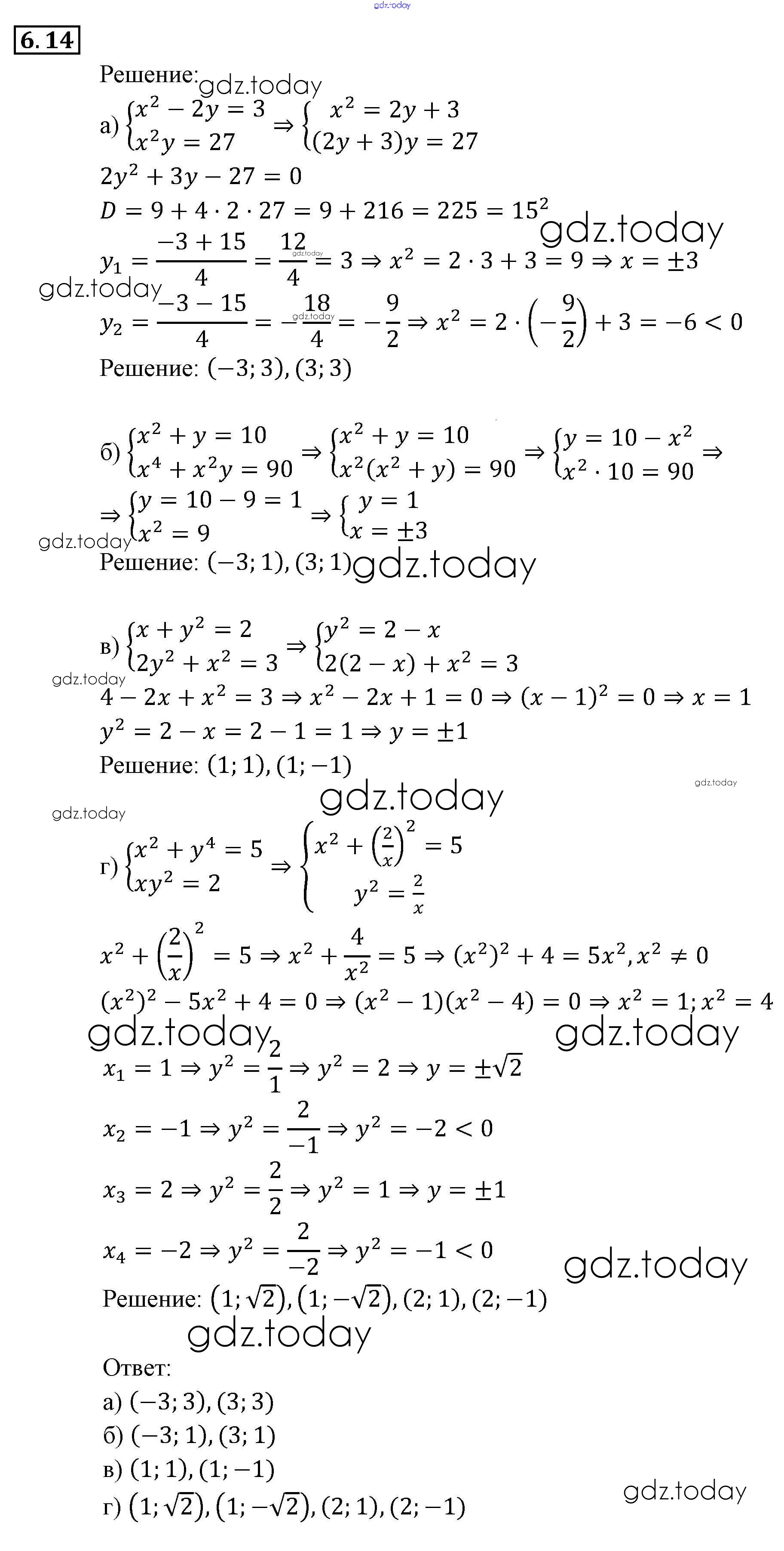 Ответы к § 6. Методы решения систем уравнений Глава 2. Системы уравнений 14 Задачнику по Алгебре для 9 класса Мордкович, Александрова Мнемозина 2010