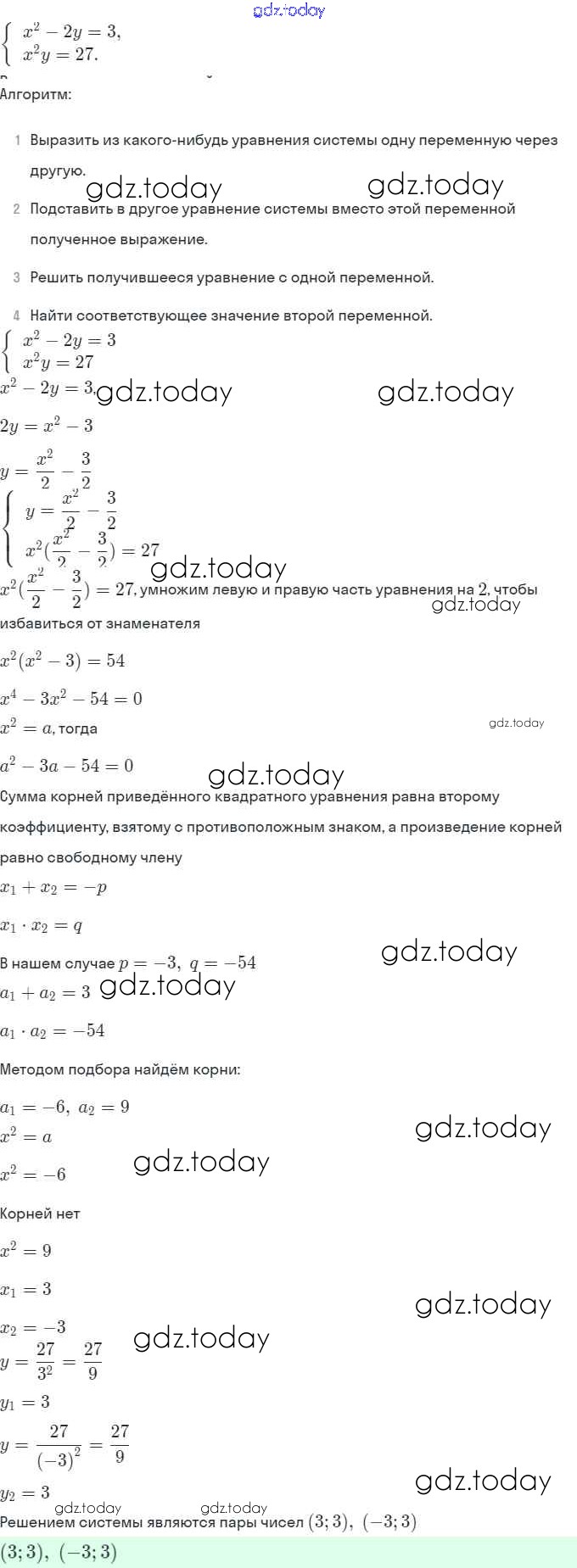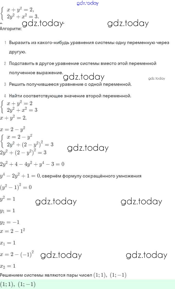 Ответы к § 6. Методы решения систем уравнений Решение. Глава 2. Системы уравнений 6.14 Задачнику по Алгебре для 9 класса Мордкович, Александрова Мнемозина 2010
