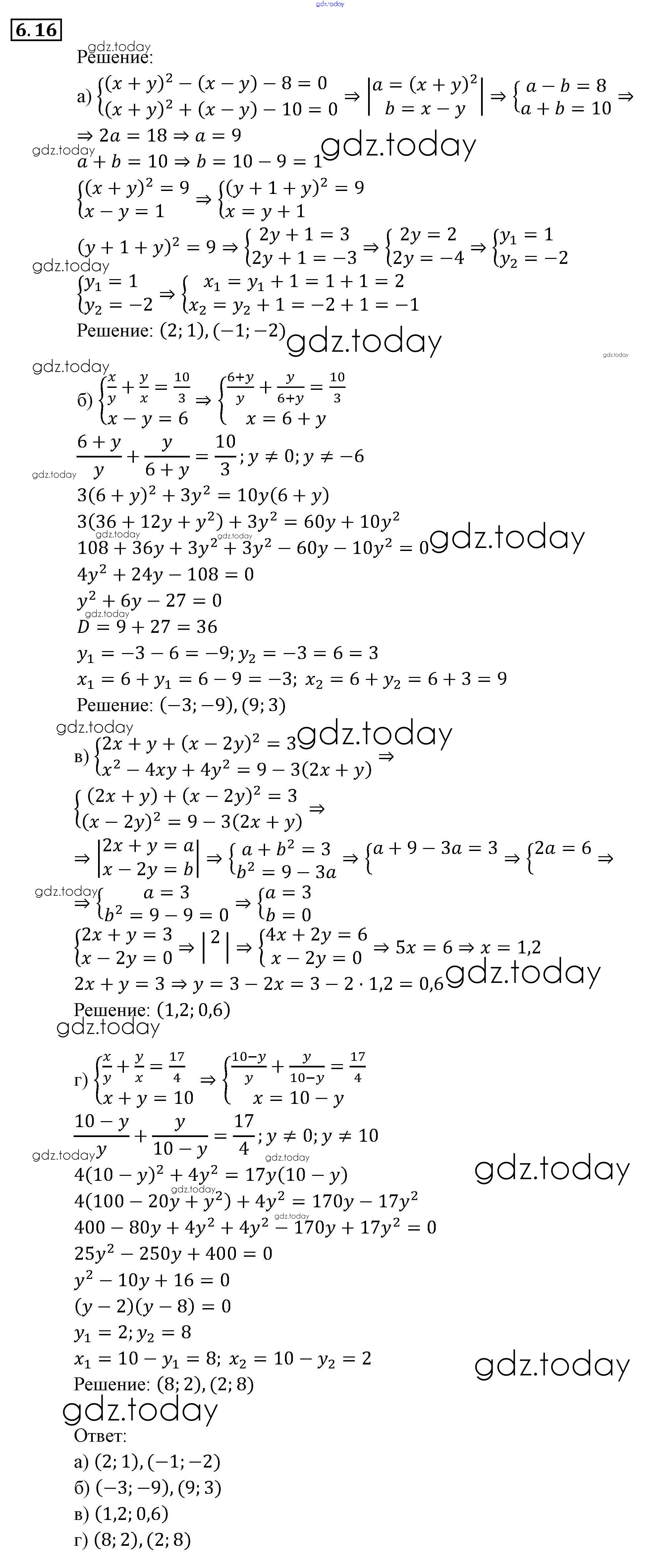Ответы к § 6. Методы решения систем уравнений Глава 2. Системы уравнений 16 Задачнику по Алгебре для 9 класса Мордкович, Александрова Мнемозина 2010