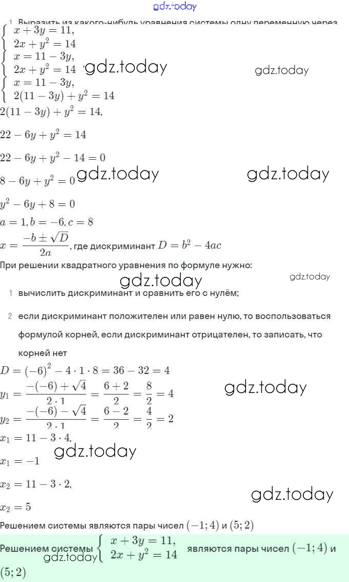 На страницах сайта gdz.today вы найдете учебный и вспомогательный материал, направленный на улучшения знаний школьной программы. ГДЗ - онлайн мир знаний § 6. Методы решения систем уравнений Решение. Глава 2. Системы уравнений 6.2 Задачнику по Алгебре для 9 класса Мордкович, Александрова Мнемозина 2010
