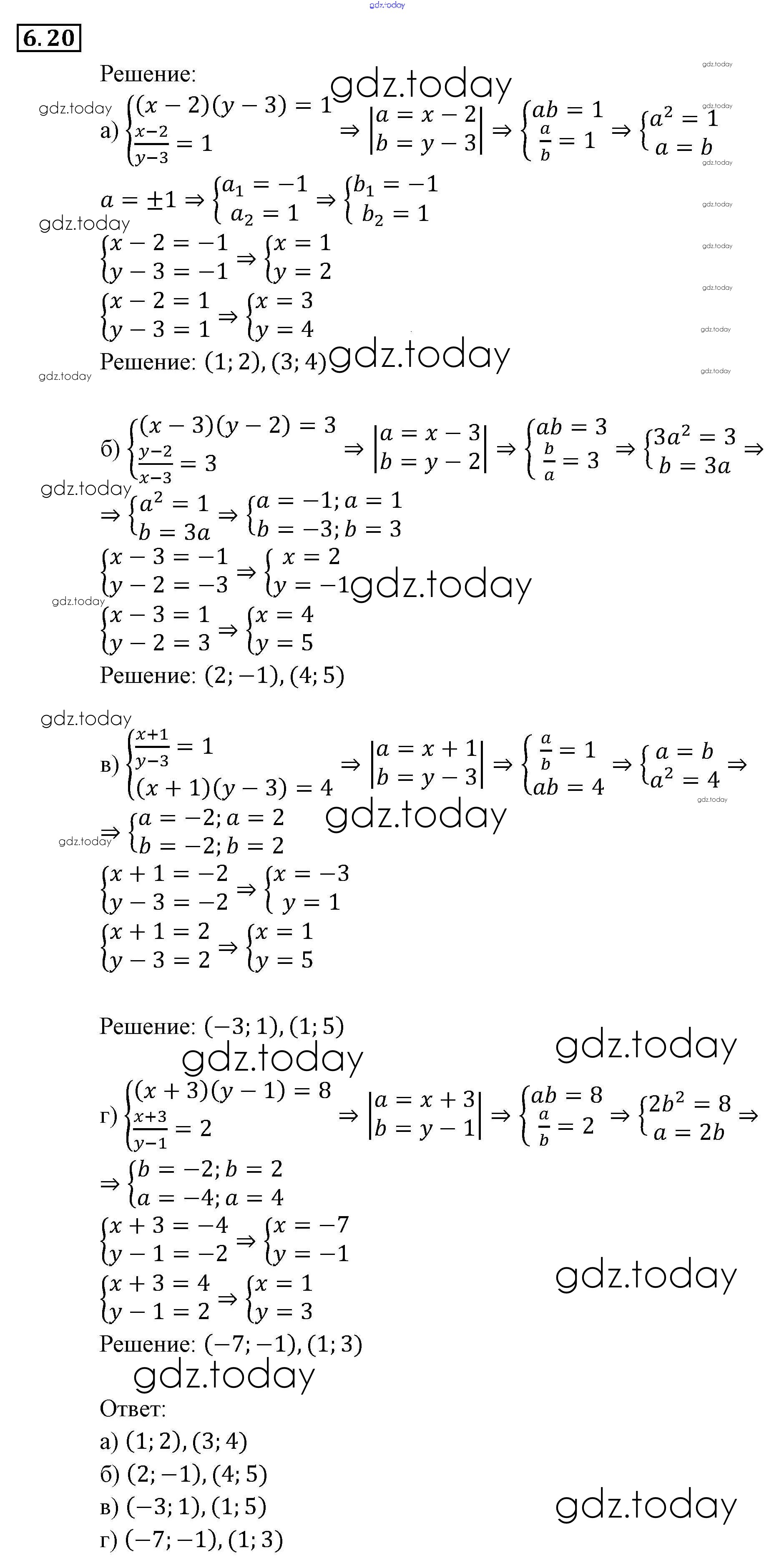 Ответы к § 6. Методы решения систем уравнений Глава 2. Системы уравнений 20 Задачнику по Алгебре для 9 класса Мордкович, Александрова Мнемозина 2010