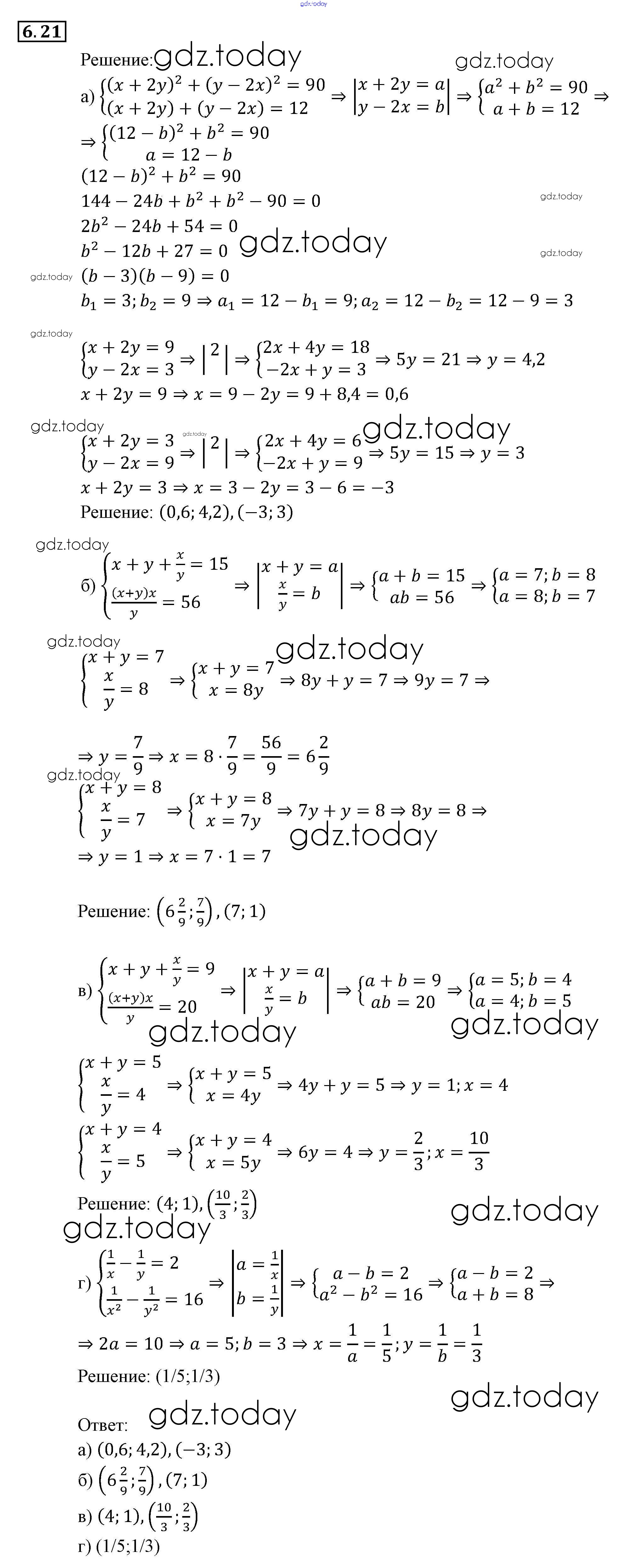 Ответы к § 6. Методы решения систем уравнений Глава 2. Системы уравнений 21 Задачнику по Алгебре для 9 класса Мордкович, Александрова Мнемозина 2010