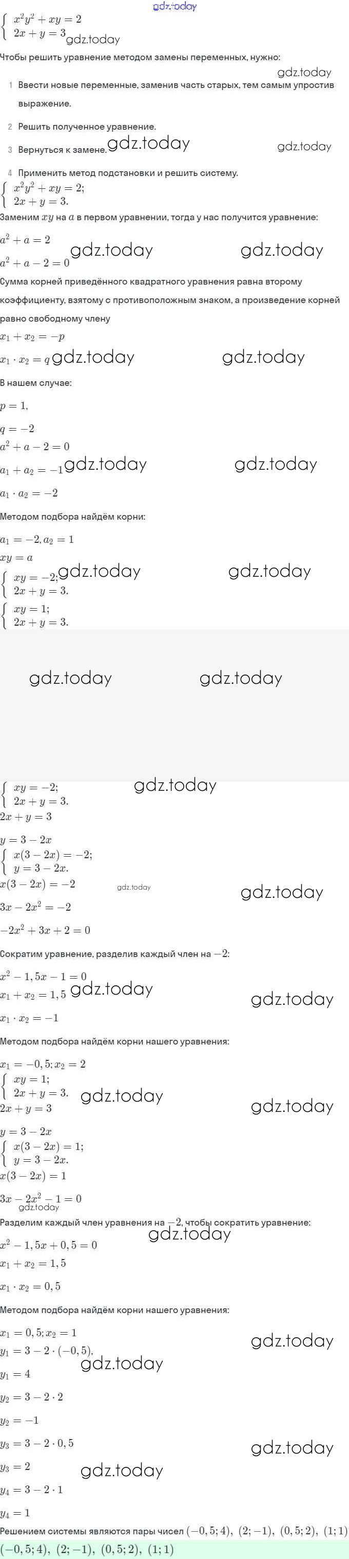 Ответы к § 6. Методы решения систем уравнений Решение. Глава 2. Системы уравнений 6.9 Задачнику по Алгебре для 9 класса Мордкович, Александрова Мнемозина 2010