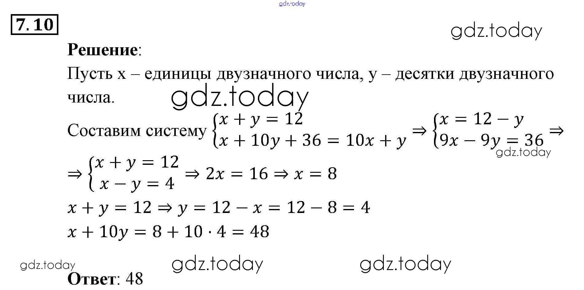 Ответы к § 7. Системы уравнений как математические модели реальных ситуаций Глава 2. Системы уравнений 10 Задачнику по Алгебре для 9 класса Мордкович, Александрова Мнемозина 2010
