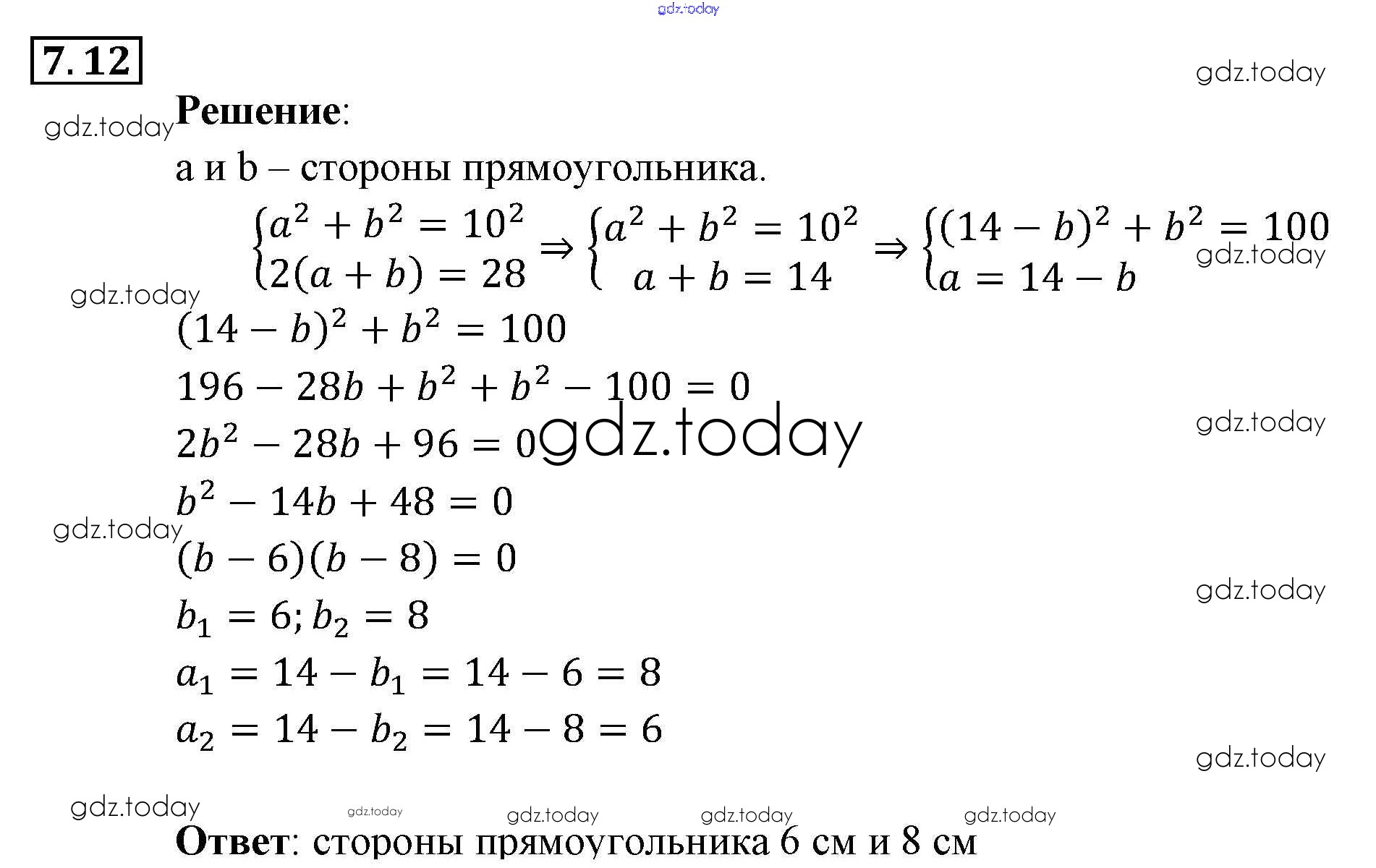 Ответы к § 7. Системы уравнений как математические модели реальных ситуаций Глава 2. Системы уравнений 12 Задачнику по Алгебре для 9 класса Мордкович, Александрова Мнемозина 2010