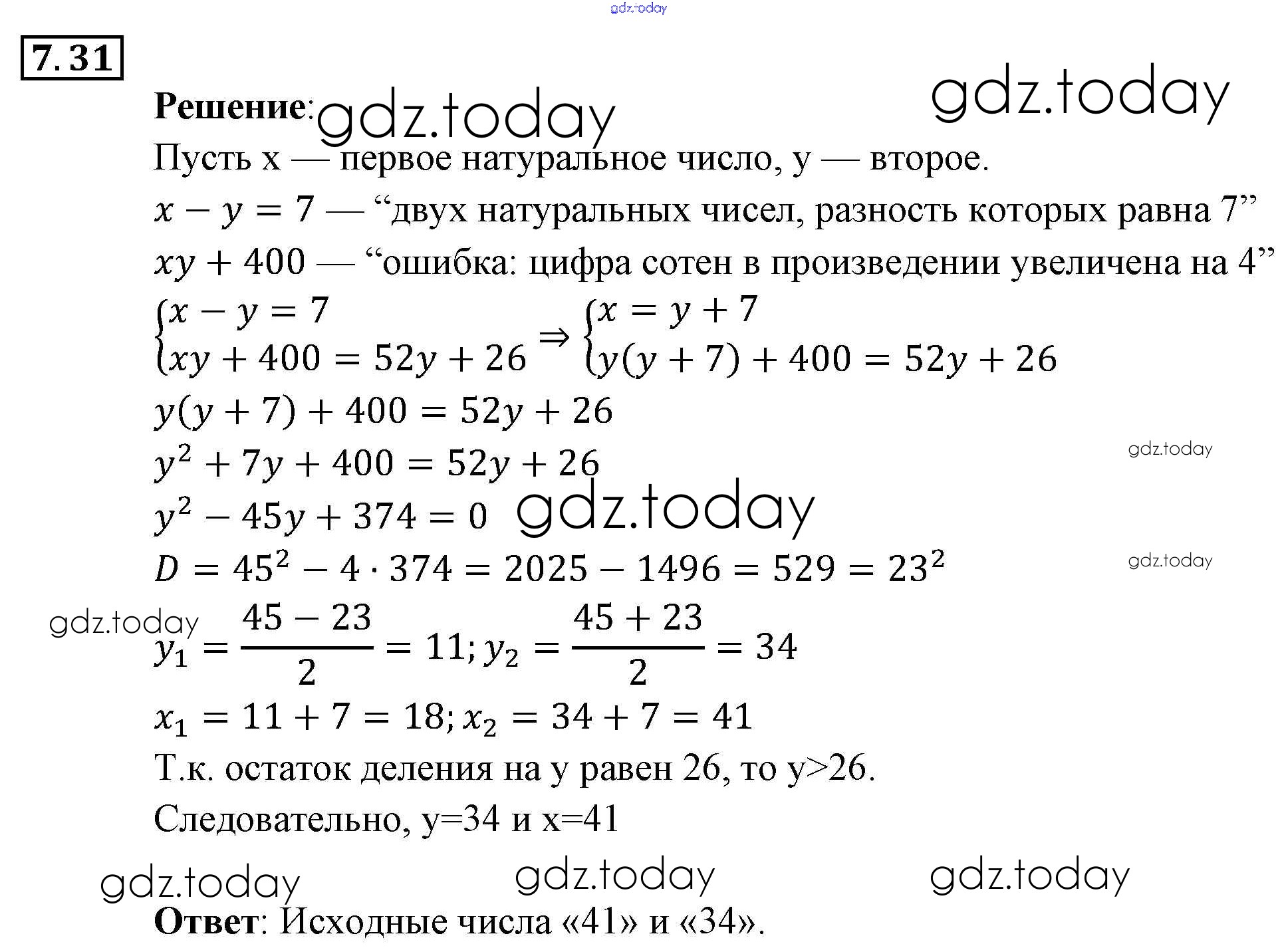 Ответы к § 7. Системы уравнений как математические модели реальных ситуаций Глава 2. Системы уравнений 31 Задачнику по Алгебре для 9 класса Мордкович, Александрова Мнемозина 2010