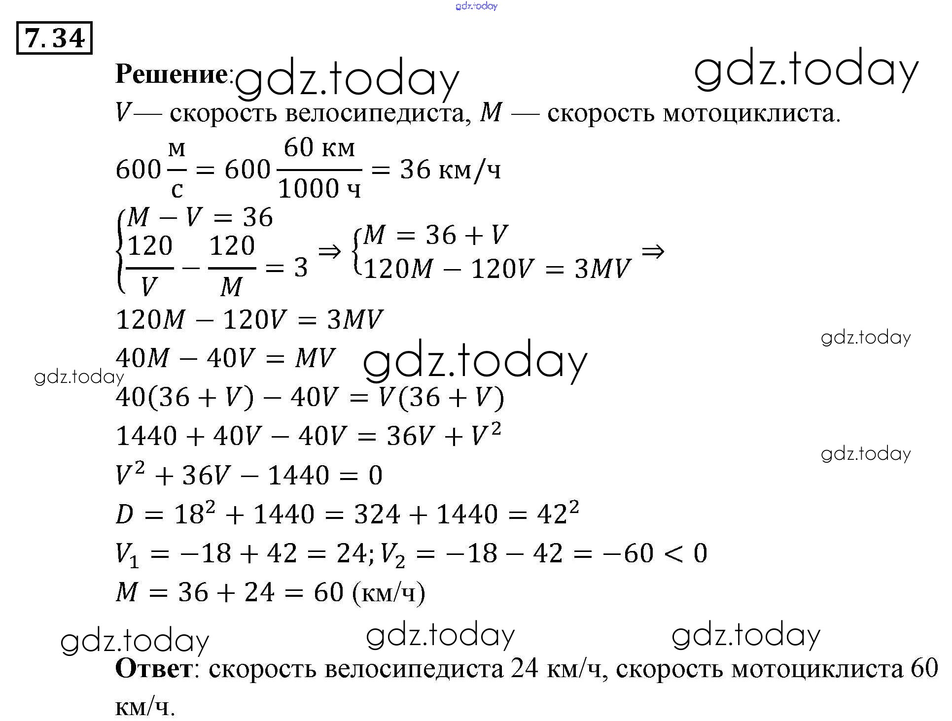 Ответы к § 7. Системы уравнений как математические модели реальных ситуаций Глава 2. Системы уравнений 34 Задачнику по Алгебре для 9 класса Мордкович, Александрова Мнемозина 2010