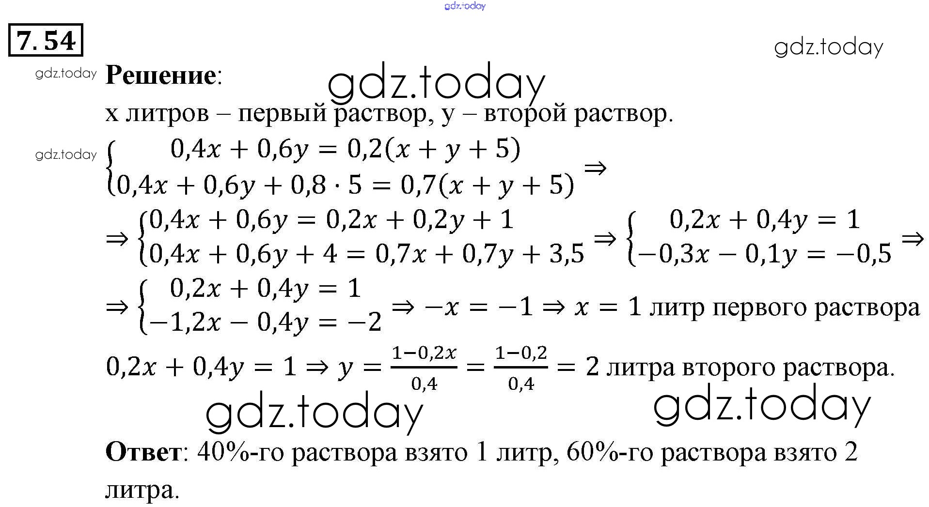 Ответы к § 7. Системы уравнений как математические модели реальных ситуаций Глава 2. Системы уравнений 54 Задачнику по Алгебре для 9 класса Мордкович, Александрова Мнемозина 2010