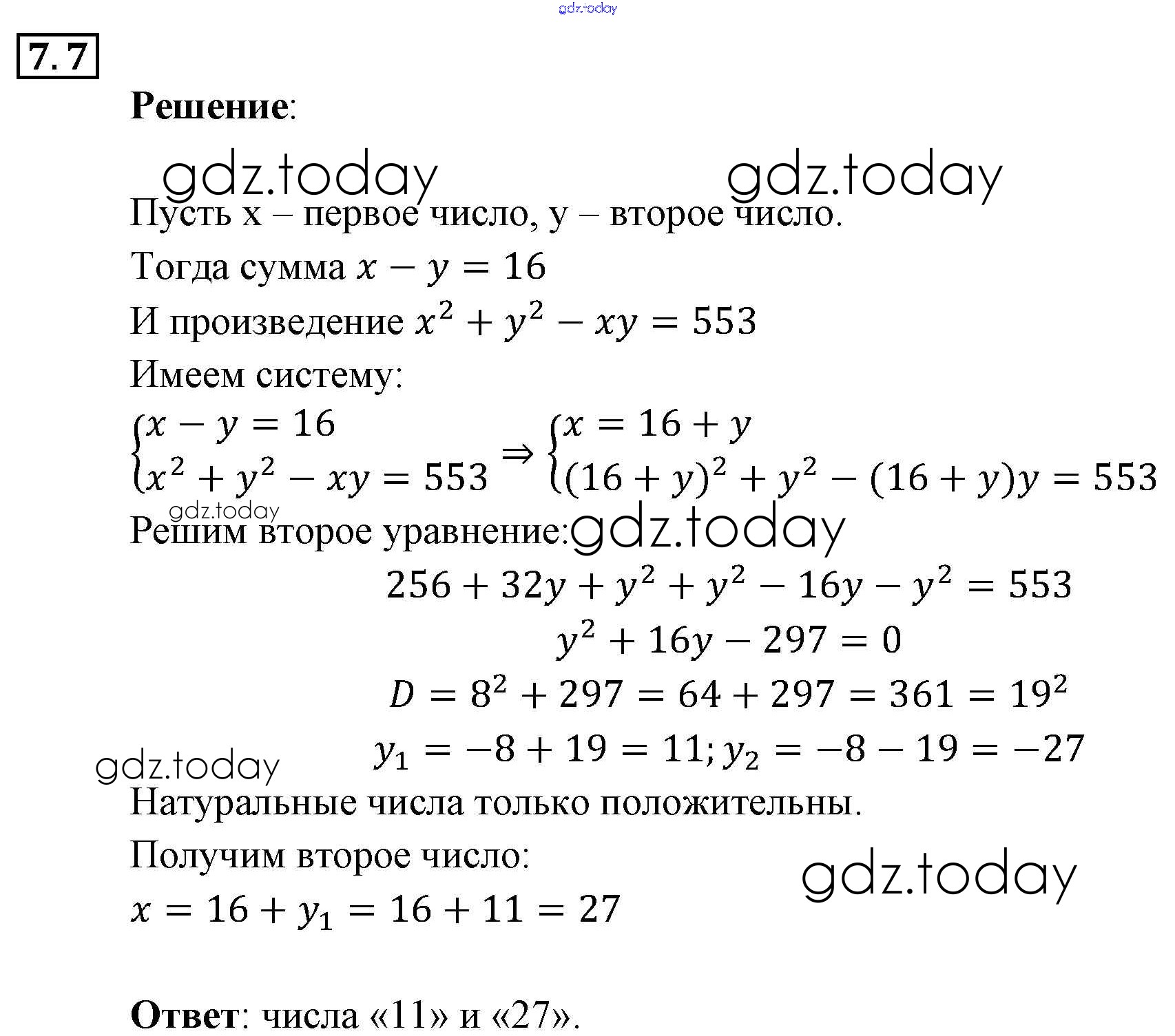 Ответы к § 7. Системы уравнений как математические модели реальных ситуаций Глава 2. Системы уравнений 7 Задачнику по Алгебре для 9 класса Мордкович, Александрова Мнемозина 2010