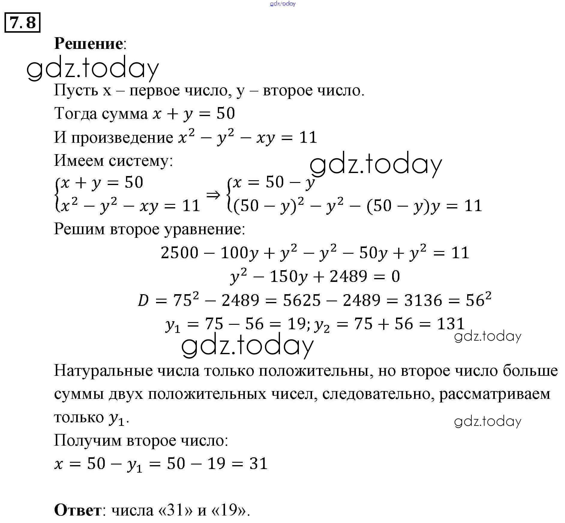 Ответы к § 7. Системы уравнений как математические модели реальных ситуаций Глава 2. Системы уравнений 8 Задачнику по Алгебре для 9 класса Мордкович, Александрова Мнемозина 2010