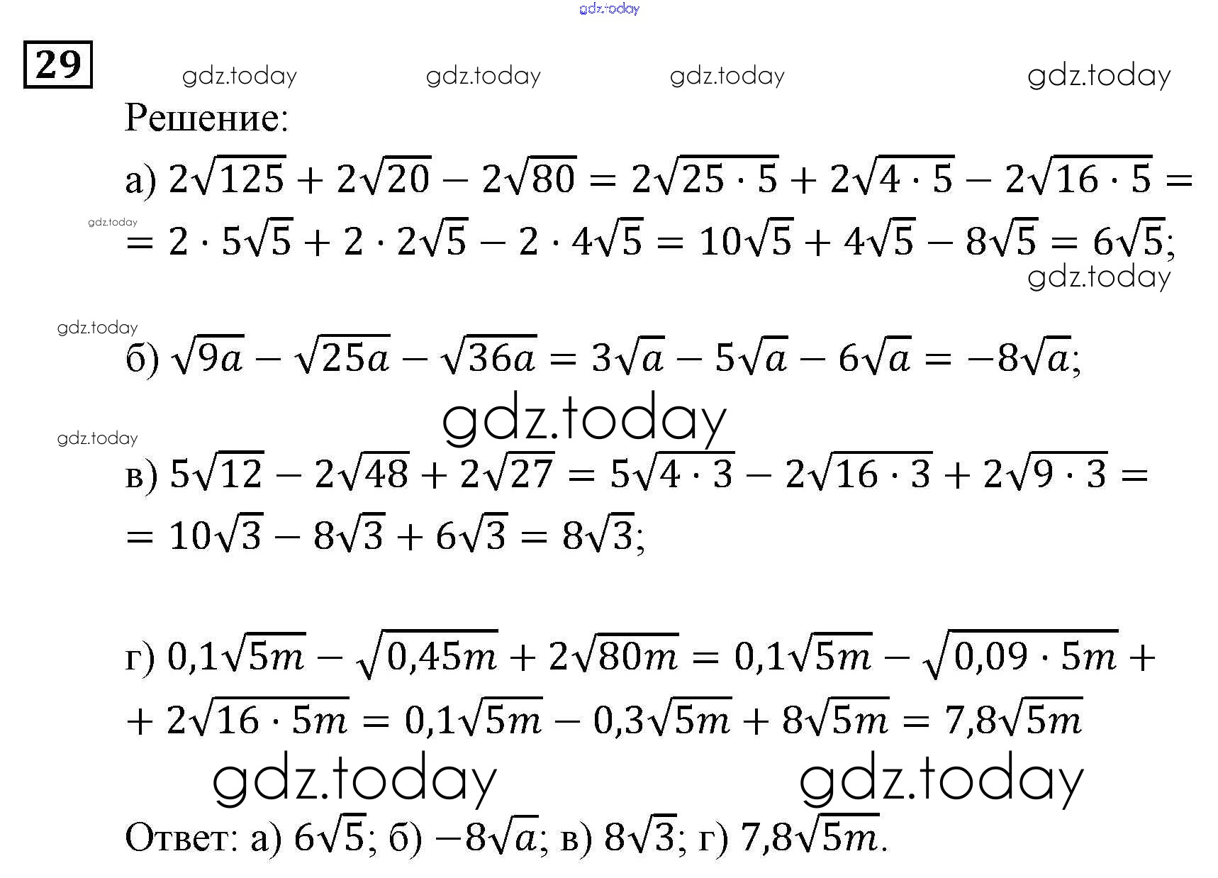 Ответы к Повторение 29 Задачнику по Алгебре для 9 класса Мордкович, Александрова Мнемозина 2010