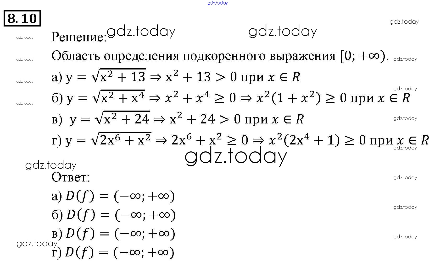 Ответы к § 8. Определение числовой функции. Область определения, область значений функции Глава 3. Числовые функции 10 Задачнику по Алгебре для 9 класса Мордкович, Александрова Мнемозина 2010