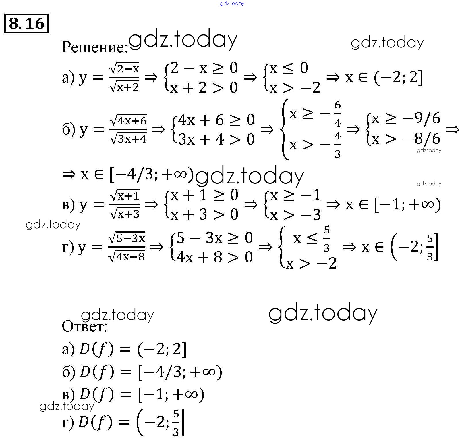 На страницах сайта gdz.today вы найдете учебный и вспомогательный материал, направленный на улучшения знаний школьной программы. ГДЗ - онлайн мир знаний § 8. Определение числовой функции. Область определения, область значений функции Глава 3. Числовые функции 16 Задачнику по Алгебре для 9 класса Мордкович, Александрова Мнемозина 2010