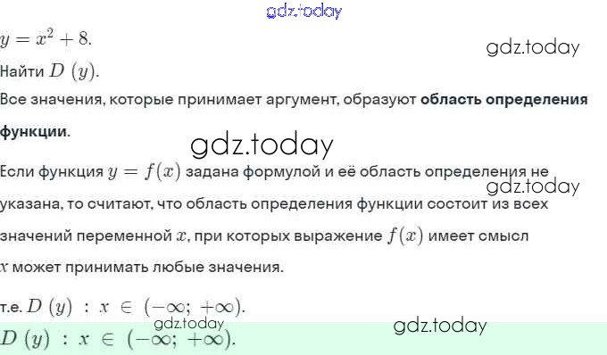 Ответы к § 8. Определение числовой функции. Область определения, область значений функции Решение. Глава 3. Числовые функции 8.2 Задачнику по Алгебре для 9 класса Мордкович, Александрова Мнемозина 2010