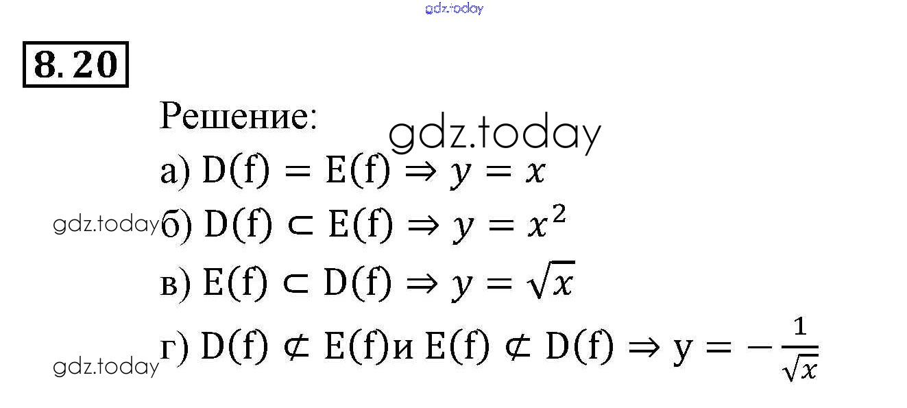Ответы к § 8. Определение числовой функции. Область определения, область значений функции Глава 3. Числовые функции 20 Задачнику по Алгебре для 9 класса Мордкович, Александрова Мнемозина 2010