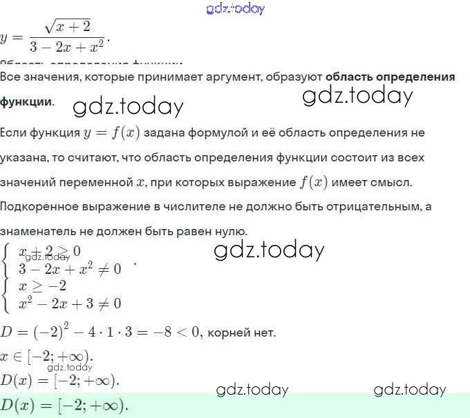Ответы к § 8. Определение числовой функции. Область определения, область значений функции Решение. Глава 3. Числовые функции 8.26 Задачнику по Алгебре для 9 класса Мордкович, Александрова Мнемозина 2010