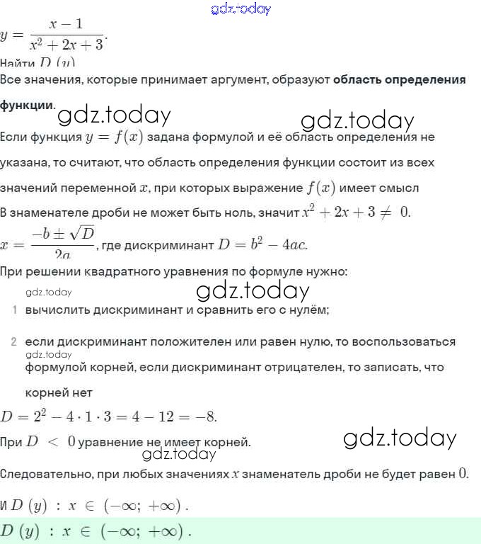 Ответы к § 8. Определение числовой функции. Область определения, область значений функции Решение. Глава 3. Числовые функции 8.8 Задачнику по Алгебре для 9 класса Мордкович, Александрова Мнемозина 2010