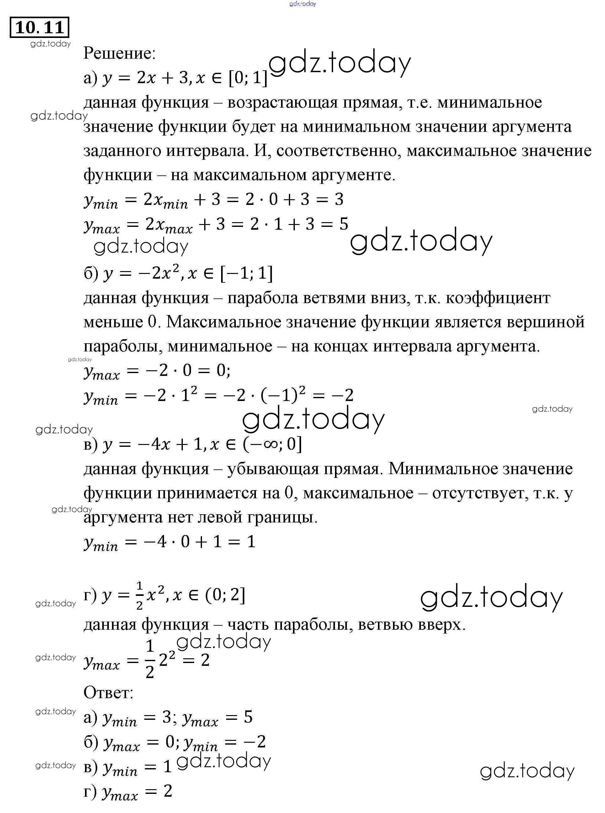 Ответы к § 10. Свойства функций Глава 3. Числовые функции 11 Задачнику по Алгебре для 9 класса Мордкович, Александрова Мнемозина 2010
