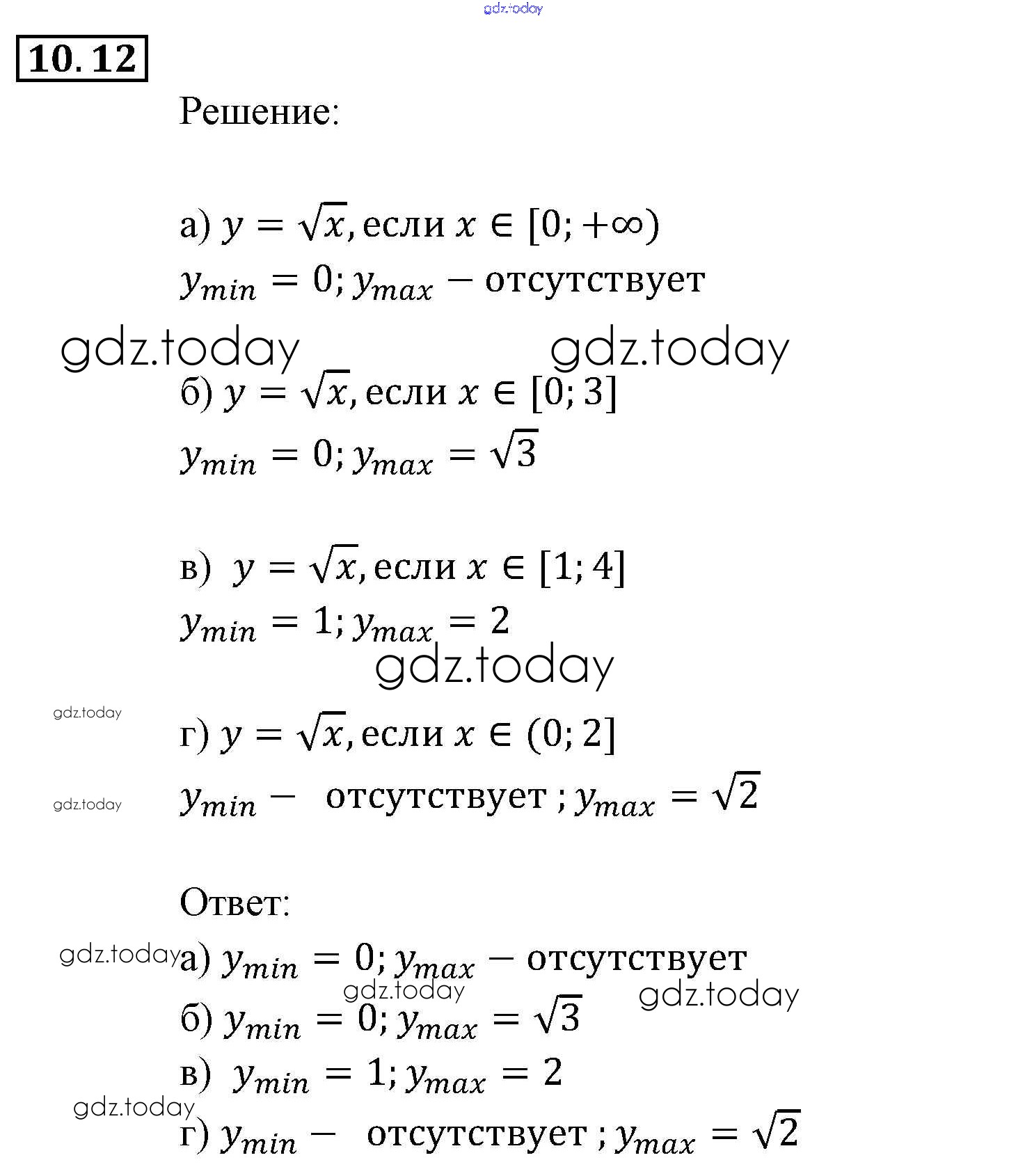 Ответы к § 10. Свойства функций Глава 3. Числовые функции 12 Задачнику по Алгебре для 9 класса Мордкович, Александрова Мнемозина 2010