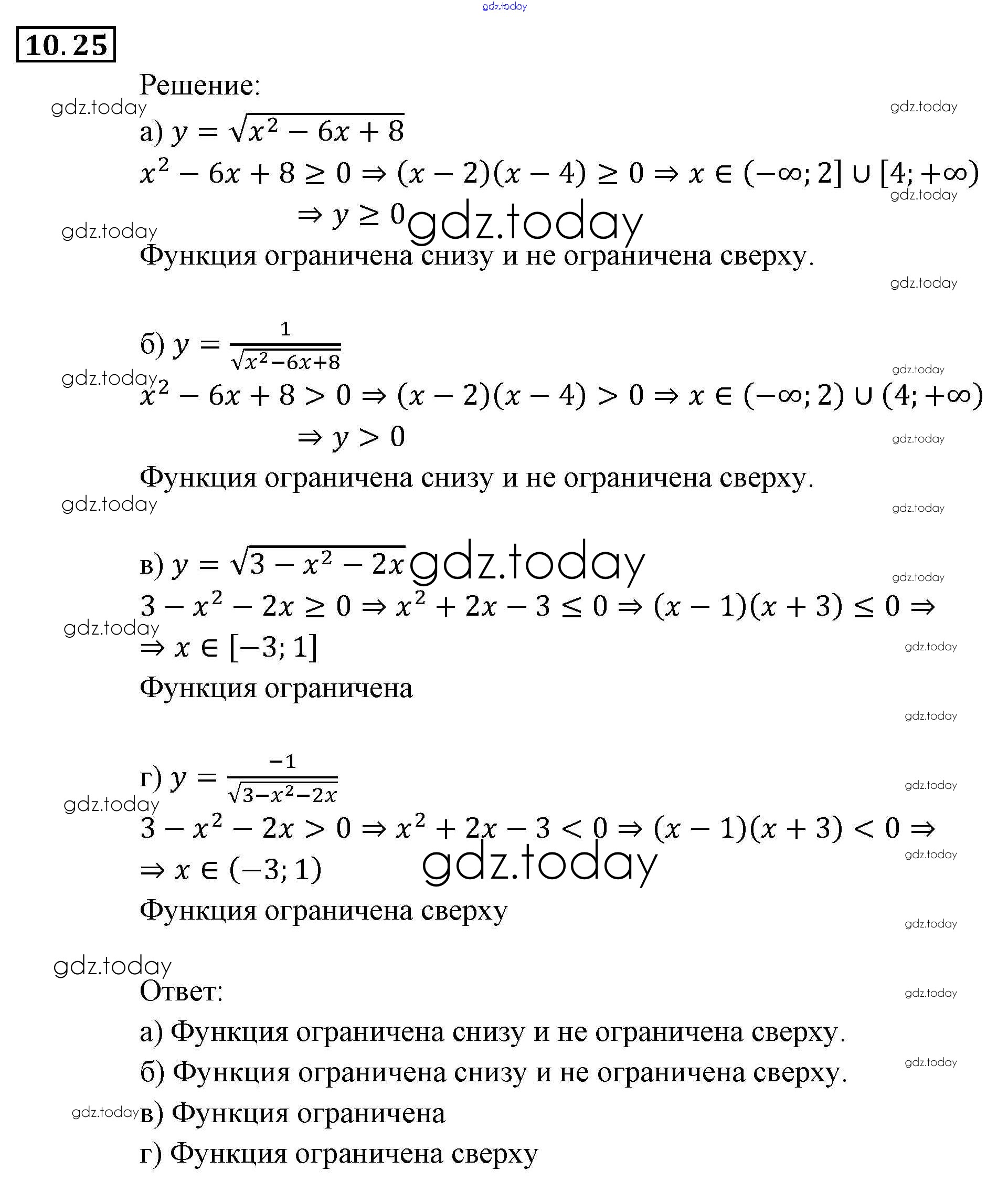 На страницах сайта gdz.today вы найдете учебный и вспомогательный материал, направленный на улучшения знаний школьной программы. ГДЗ - онлайн мир знаний § 10. Свойства функций Глава 3. Числовые функции 25 Задачнику по Алгебре для 9 класса Мордкович, Александрова Мнемозина 2010