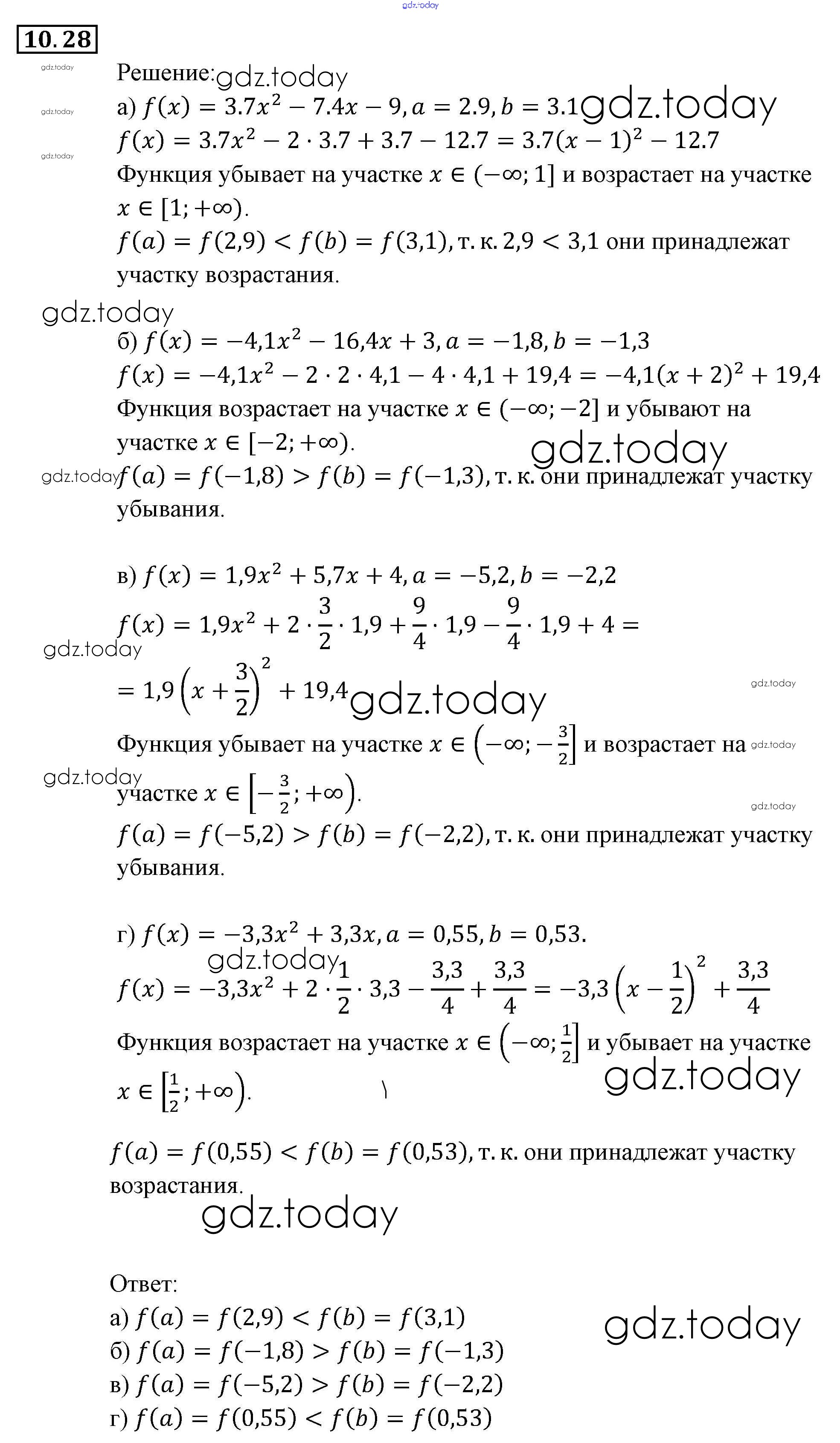 Ответы к § 10. Свойства функций Глава 3. Числовые функции 28 Задачнику по Алгебре для 9 класса Мордкович, Александрова Мнемозина 2010