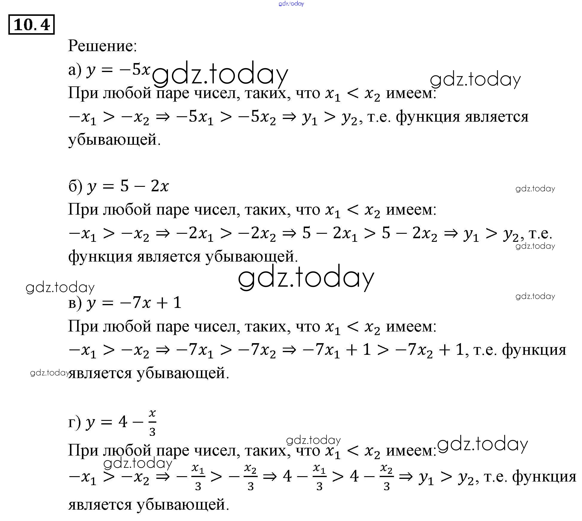 Ответы к § 10. Свойства функций Решение. Глава 3. Числовые функции 10.4 Задачнику по Алгебре для 9 класса Мордкович, Александрова Мнемозина 2010
