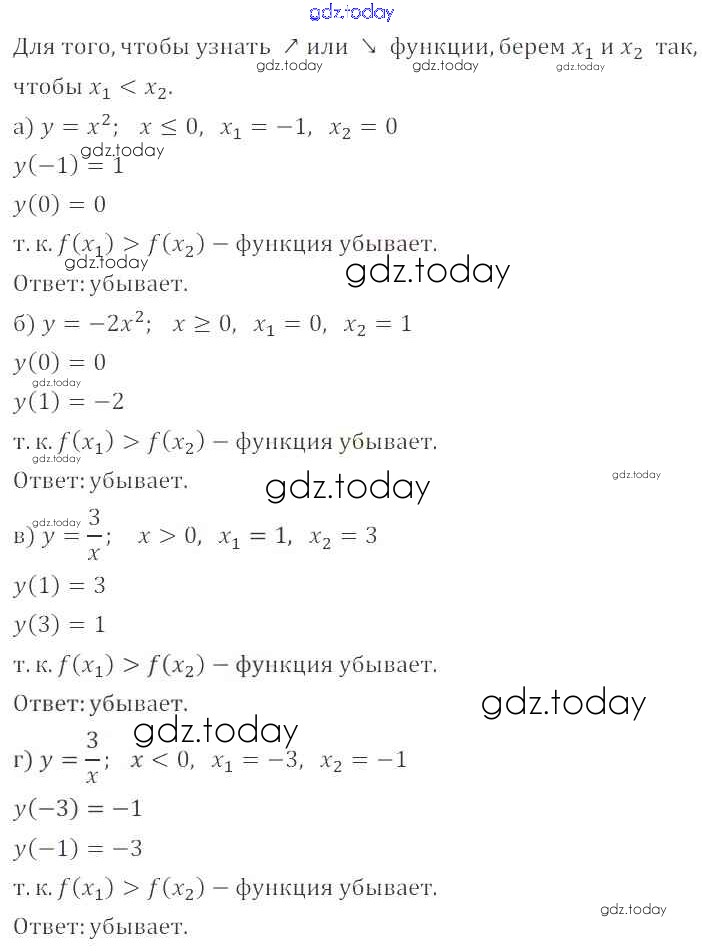 Ответы к § 10. Свойства функций Глава 3. Числовые функции 6 Задачнику по Алгебре для 9 класса Мордкович, Александрова Мнемозина 2010