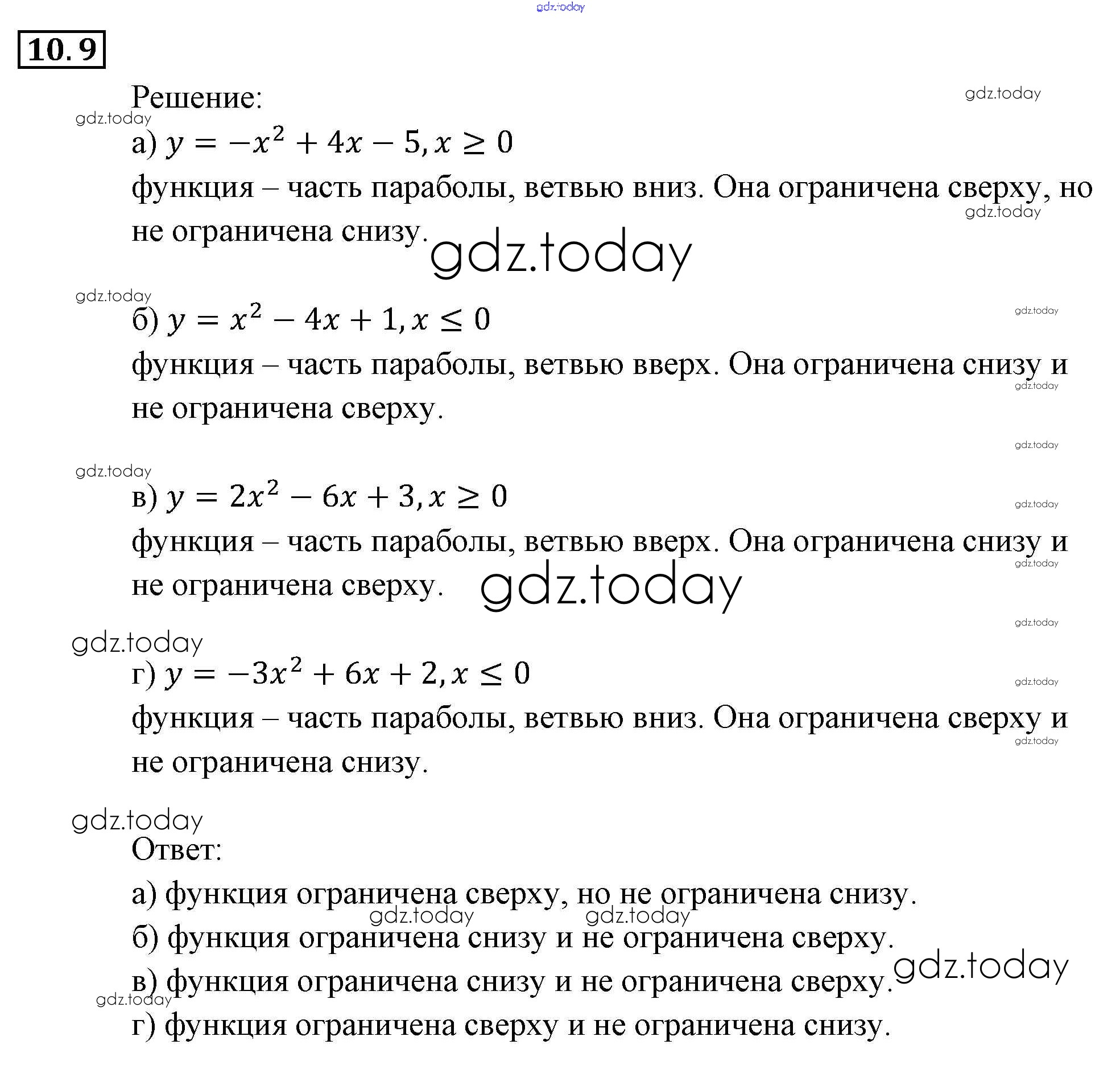 Ответы к § 10. Свойства функций Глава 3. Числовые функции 9 Задачнику по Алгебре для 9 класса Мордкович, Александрова Мнемозина 2010