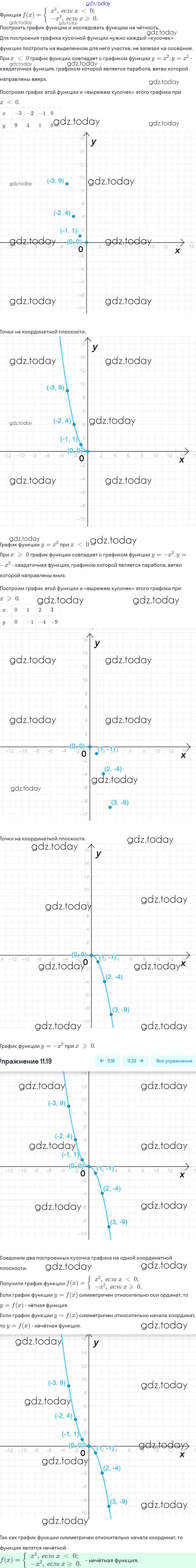 Ответы к § 11. Честные и нечестные функции Решение. Глава 3. Числовые функции 11.19 Задачнику по Алгебре для 9 класса Мордкович, Александрова Мнемозина 2010