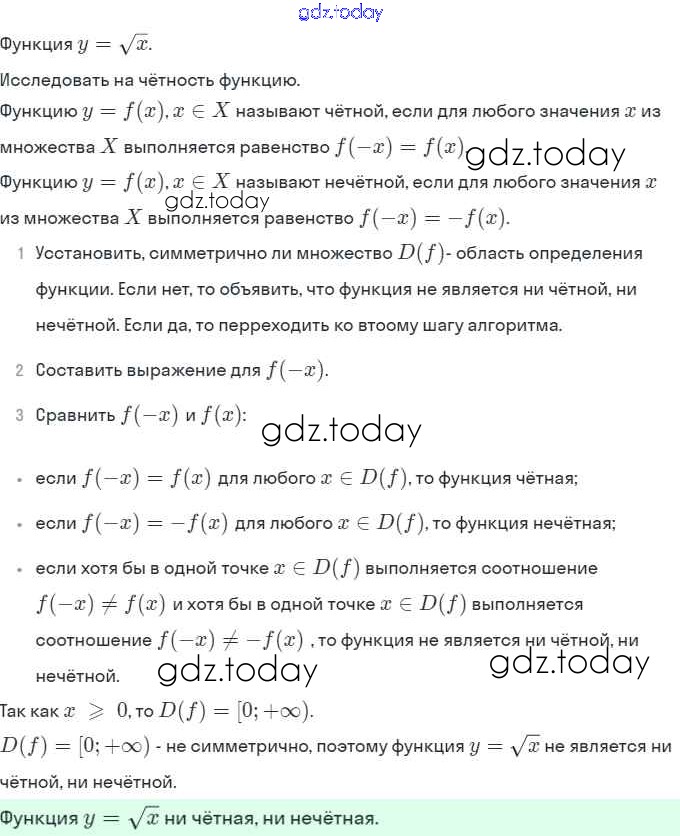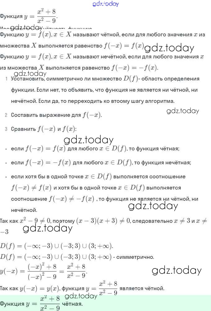 Ответы к § 11. Честные и нечестные функции Решение. Глава 3. Числовые функции 11.21 Задачнику по Алгебре для 9 класса Мордкович, Александрова Мнемозина 2010