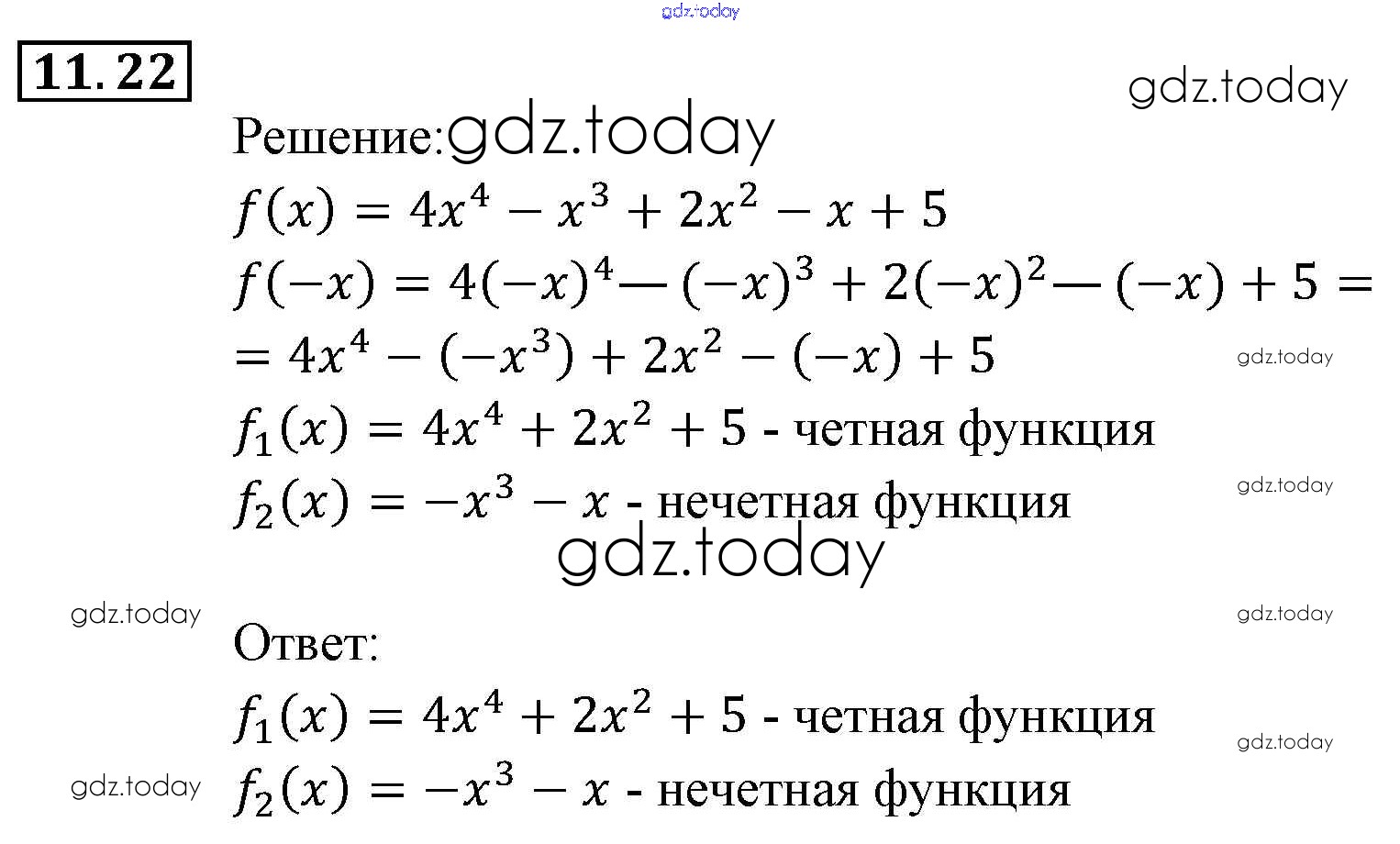 Ответы к § 11. Честные и нечестные функции Глава 3. Числовые функции 22 Задачнику по Алгебре для 9 класса Мордкович, Александрова Мнемозина 2010