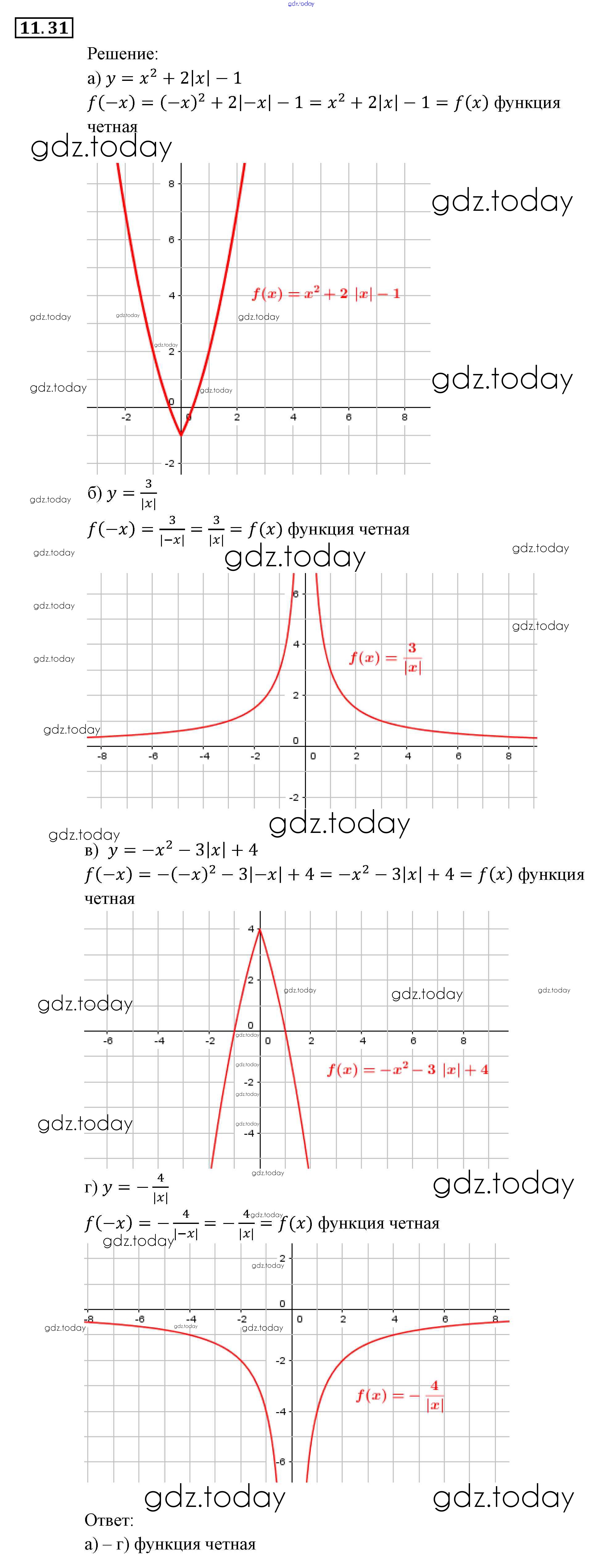 Ответы к § 11. Честные и нечестные функции Глава 3. Числовые функции 31 Задачнику по Алгебре для 9 класса Мордкович, Александрова Мнемозина 2010