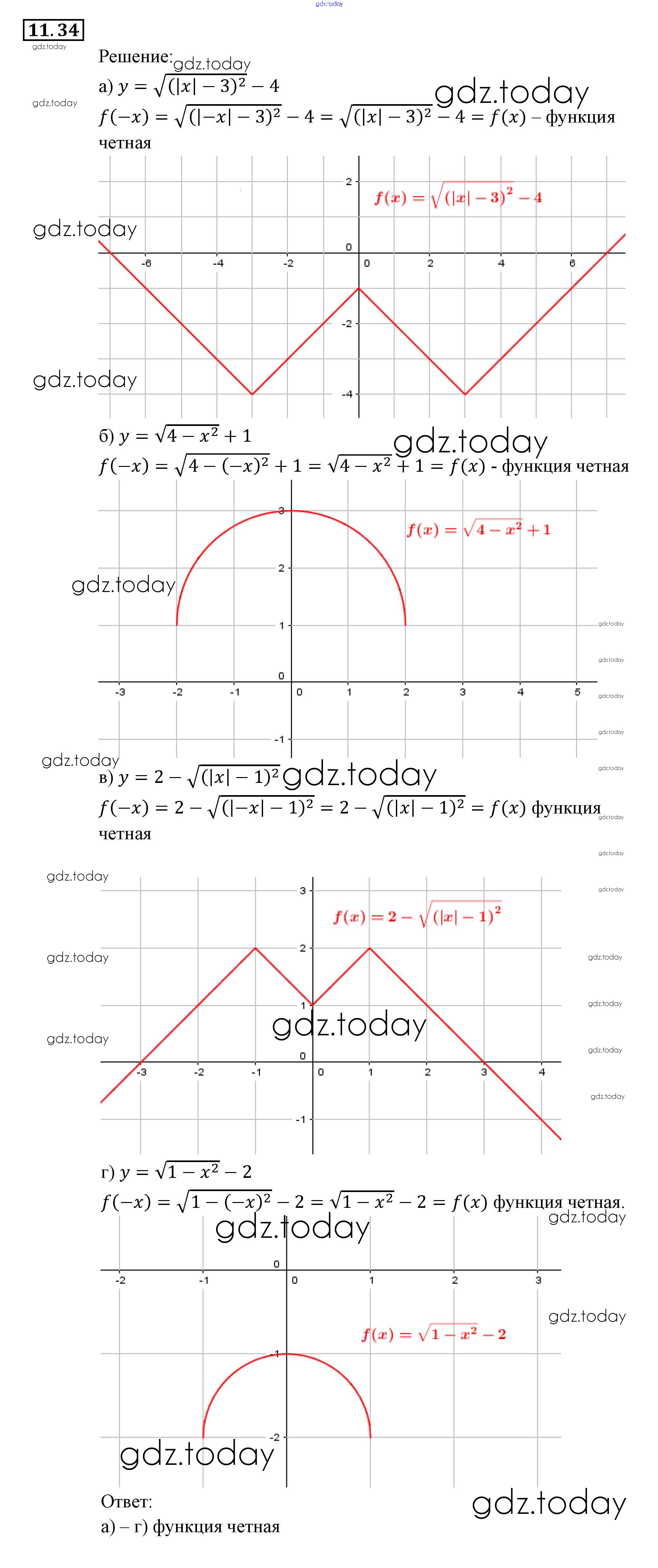 Ответы к § 11. Честные и нечестные функции Глава 3. Числовые функции 34 Задачнику по Алгебре для 9 класса Мордкович, Александрова Мнемозина 2010