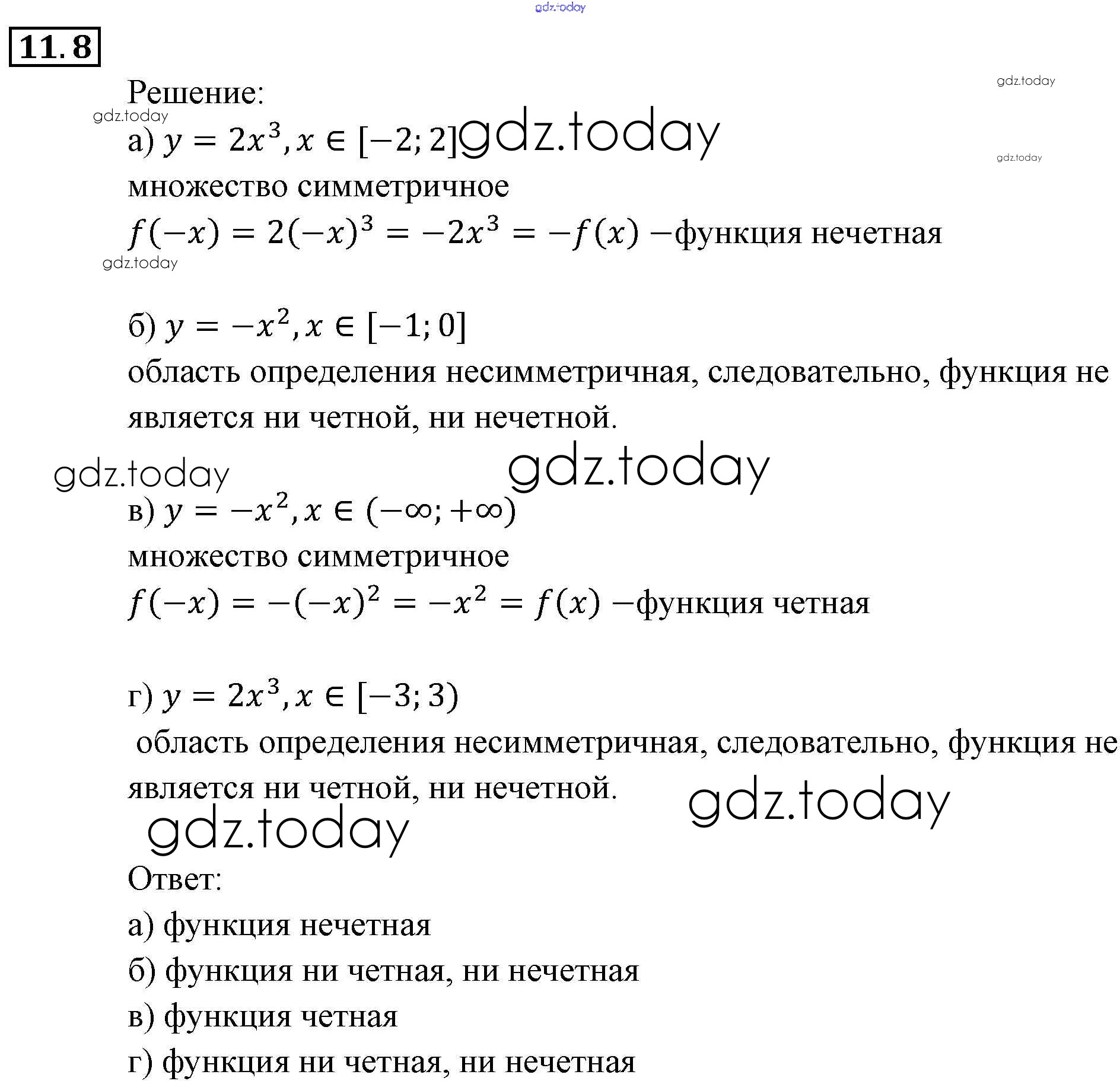 Ответы к § 11. Честные и нечестные функции Глава 3. Числовые функции 8 Задачнику по Алгебре для 9 класса Мордкович, Александрова Мнемозина 2010