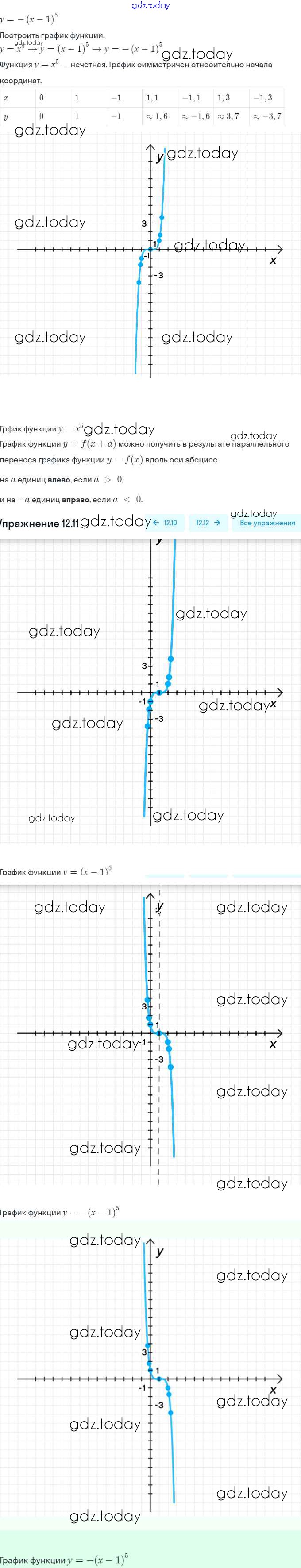 Ответы к §12. Функции y = xⁿ (n ∈ N), их свойства и графики Решение. Глава 3. Числовые функции 12.11 Задачнику по Алгебре для 9 класса Мордкович, Александрова Мнемозина 2010