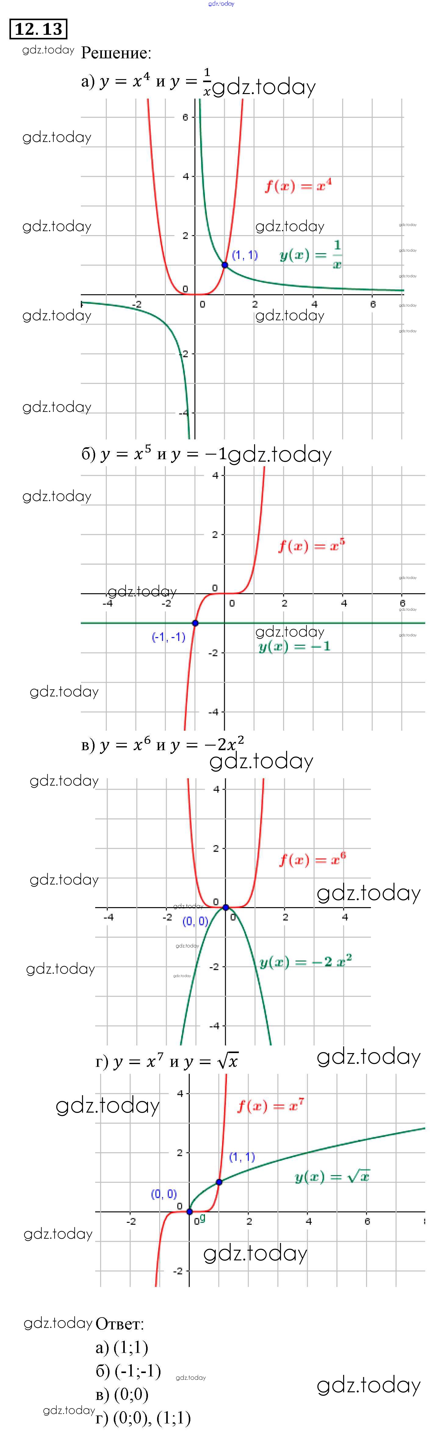Ответы к § 12. Функции у = хп (п е N), их свойства и графики Глава 3. Числовые функции 13 Задачнику по Алгебре для 9 класса Мордкович, Александрова Мнемозина 2010