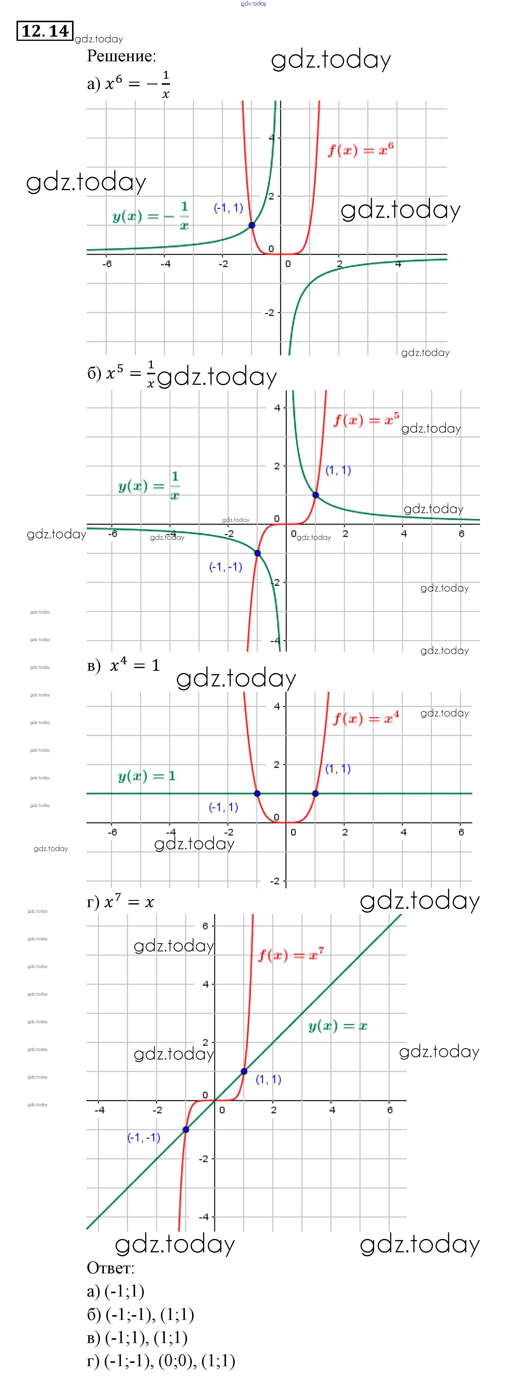 Ответы к § 12. Функции у = хп (п е N), их свойства и графики Глава 3. Числовые функции 14 Задачнику по Алгебре для 9 класса Мордкович, Александрова Мнемозина 2010