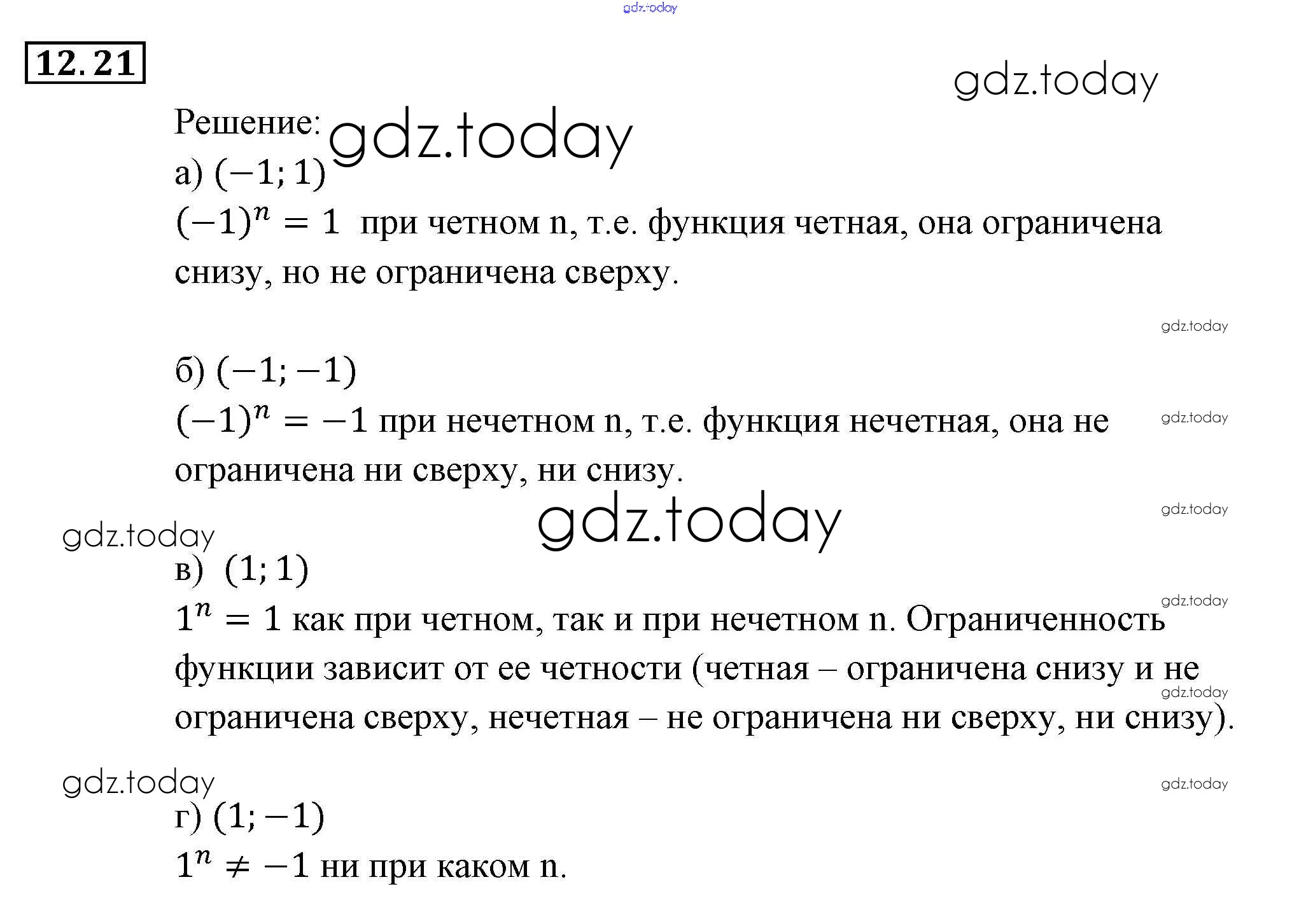 Ответы к § 12. Функции у = хп (п е N), их свойства и графики Глава 3. Числовые функции 21 Задачнику по Алгебре для 9 класса Мордкович, Александрова Мнемозина 2010
