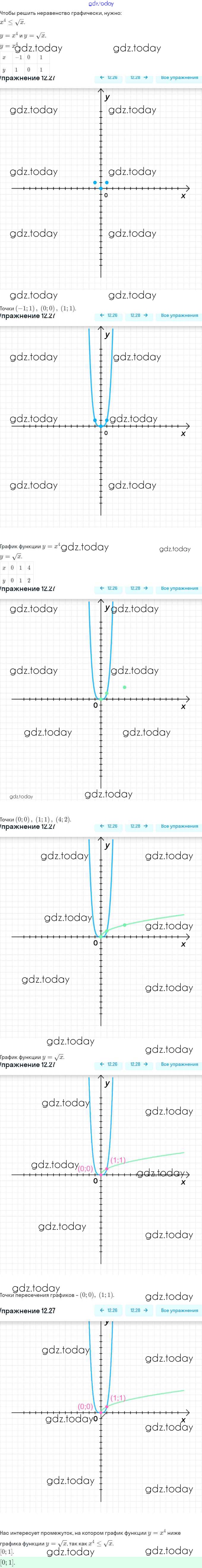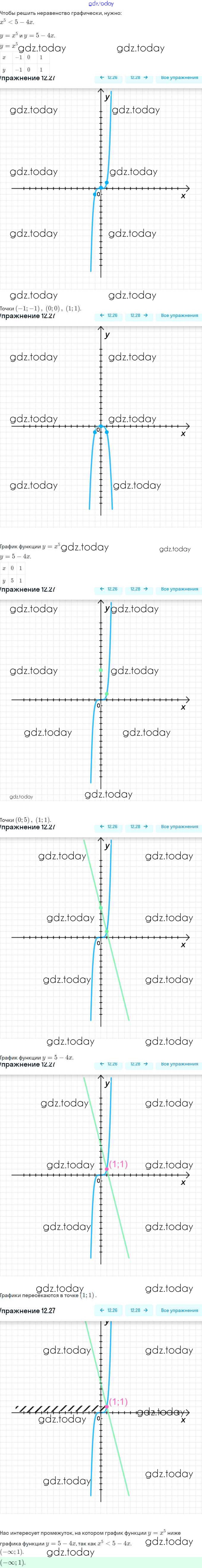 Ответы к §12. Функции y = xⁿ (n ∈ N), их свойства и графики Решение. Глава 3. Числовые функции 12.27 Задачнику по Алгебре для 9 класса Мордкович, Александрова Мнемозина 2010